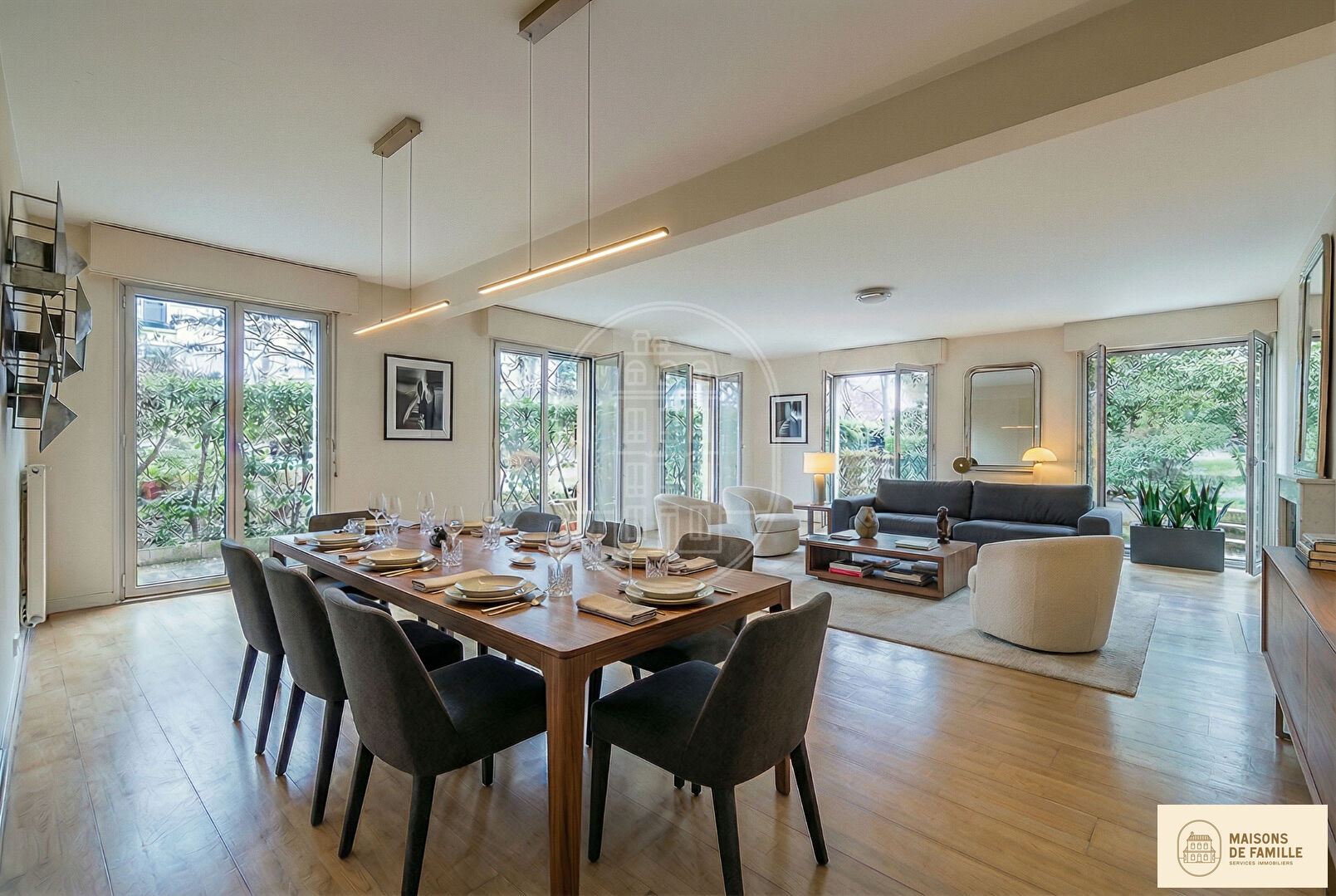 Appart de Famille Immobilier, l'expert de la vente d'appartements familiaux PARIS 13 (limite 14e et 5e). Boulevard Arago. A deux pas de Denfert-Rochereau, nous vous présentons ce superbe appartement familial de réception de 116,24 m² Carrez, situé en rez-de-jardin d'un immeuble de standing des années 1980 parfaitement entretenu avec gardienne. L'appartement s'ouvre sur 86 m² de terrasses exposées Sud et Est, accessibles depuis les pièces de vie par de larges baies vitrées, offrant une continuité exceptionnelle avec le jardin paysager arboré de la copropriété, sans vis-à-vis et au calme absolu. Il se compose de la manière suivante : Une vaste entrée avec rangements, un double séjour lumineux de plus de 40 m² (possibilité 50 m² après ouverture de la cuisine), une cuisine indépendante, deux chambres avec possibilité d'en créer une troisième, une salle de bains avec WC, une salle d'eau et un WC invités. Un rafraîchissement est à prévoir. Copropriété de standing très bien entretenue avec gardienne. Chauffage collectif. Charges d'environ 650 euros/mois. Une cave et un box fermé en sous-sol complètent ce bien. DPE : D A proximité immédiate des commerces, marchés, restaurants, nombreux espaces verts (Square Henri Cadiou), ainsi que des établissements scolaires réputés. (Collège Rodin) Métros Denfert-Rochereau, Saint-Jacques, Glacière à quelques minutes. Un appartement familial rare. Opportunité à saisir. Contact direct 7/7. Corentin Daguin 06.61.94.42.18 (3.50 % honoraires TTC à la charge de l'acquéreur.) Copropriété de 60 lots (Pas de procédure en cours). Charges annuelles : 7800 euros.