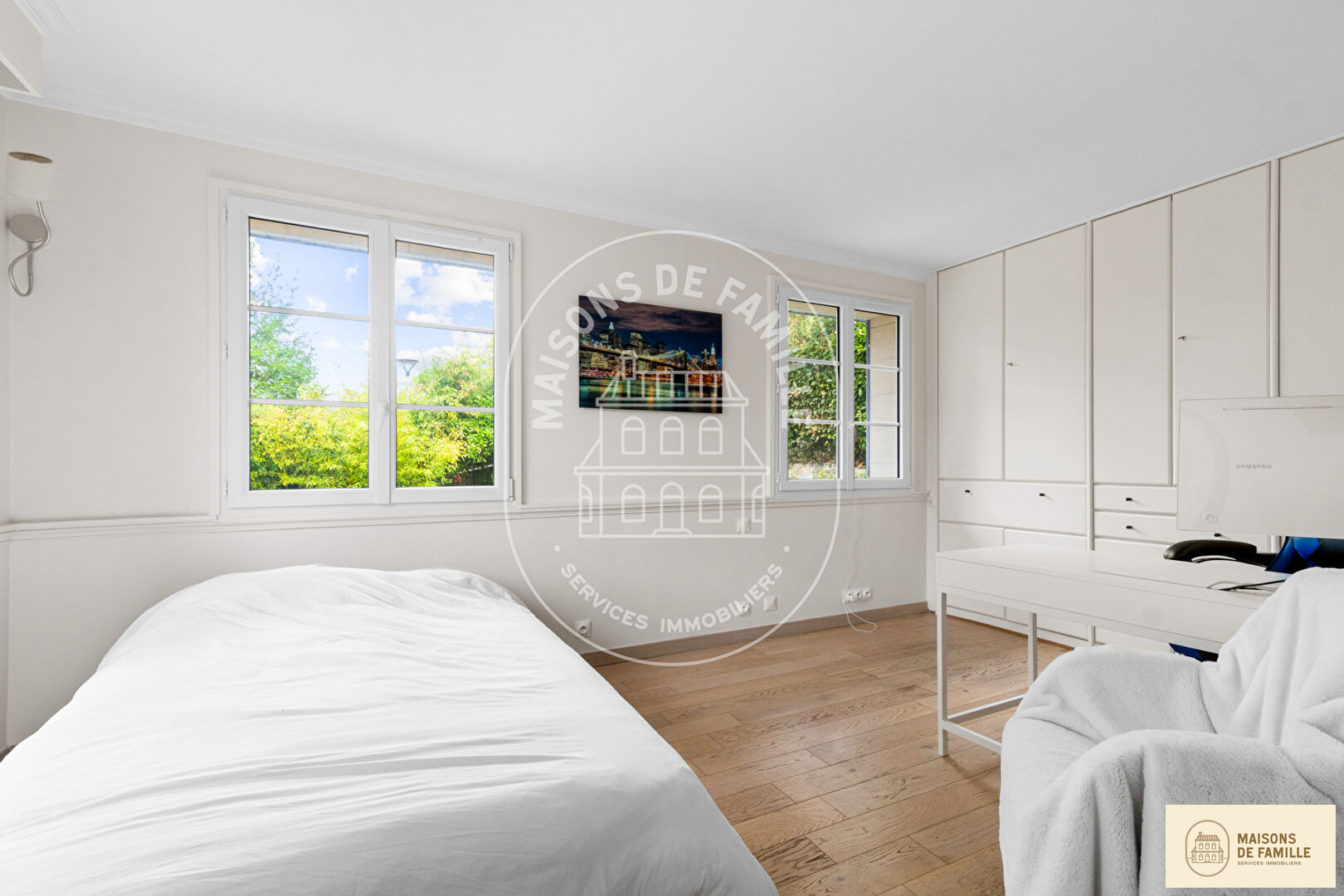 Maisons de Famille Immobilier, l'expert de la vente de Maisons dans l'ouest parisien BOUGIVAL- Idéalement située sur les hauteurs de la ville, à l'abri des regards et au calme absolu, nous vous présentons cette belle maison de 190m2 habitables et 304m2 au sol en excellent état sur un beau terrain arboré d'environ 1000m2 et sa terrasse avec vue de 90m2. La maison se compose au RDC d'une entrée desservant un grand triple séjour salle à manger de 65m2 avec accès de plain-pied aux terrasses, une cuisine indépendante, une chambre, une salle d'eau avec WC. Au premier étage, un palier dessert une suite parentale avec salle de bains et dressing , 2 chambres, une salle de bains, et un WC séparé. Au sous-sol, une salle de jeux, cave à vin, buanderie, celier et un garage pour 2 voitures. Vous serez séduis par l'excellent état de la maison, son emplacement et son espace extérieur avec vue sur la vallée ainsi que par ses performances énergétique (DPE A/A). A venir visiter sans plus tarder ! Contact direct : Antoine Duterque 07.62.44.80.08 (2.05 % honoraires TTC à la charge de l'acquéreur.)
