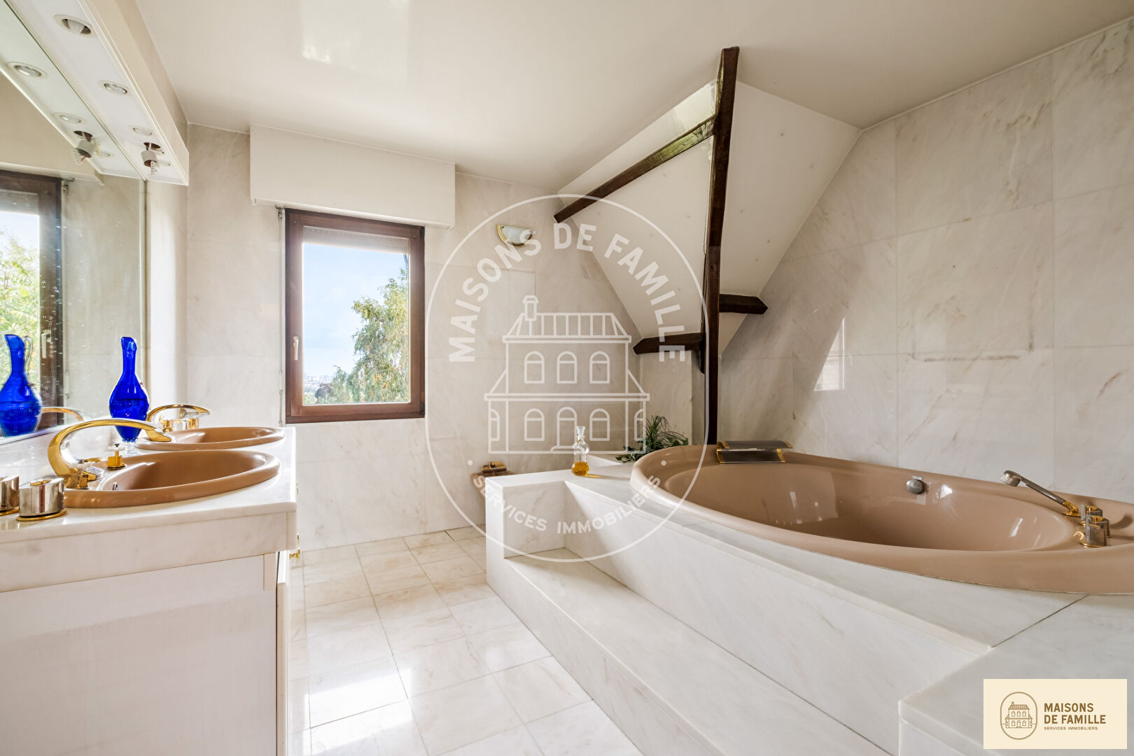 Maisons de Famille Immobilier, l'expert de la vente de Maisons dans l'ouest parisien. A LA LIMITE ENTRE LOUVECIENNES ET BOUGIVAL - A proximité des écoles et à 10 min à pieds de la gare nous vous présentons *Philippine*, cette belle et spacieuse demeure de 270m2 habitable et 409m2 au sol sur un terrain de 1366m2. La maison se compose de 3 niveaux : Au rez-de-chaussée, une entrée dessert un vaste séjour/salle à manger de plus de 90m2 avec accès direct sur le jardin, cuisine indépendante, chambre avec balcon, bureau, salle d'eau avec WC et un WC séparé. A l'étage, un palier dessert 4 chambres dont une avec balcon, 2 salle de bains; 2 terrasses supplémentaires et 2 WC. Au sous-sol, possibilité d'aménager un studio indépendant avec sa salle d'eau et WC, 2 caves, cave à vin, atelier, chaufferie et un grand garage. Beau jardin arboré à l'abri des regards. Idéalement située, au calme et baignée de lumière, vous serez séduits par les beaux volumes qu'offrent la maison. Contact direct : Antoine Duterque 07.62.44.80.08 Maisons de Famille - Agence Immobilière Bougival (3.39 % honoraires TTC à la charge de l'acquéreur.)