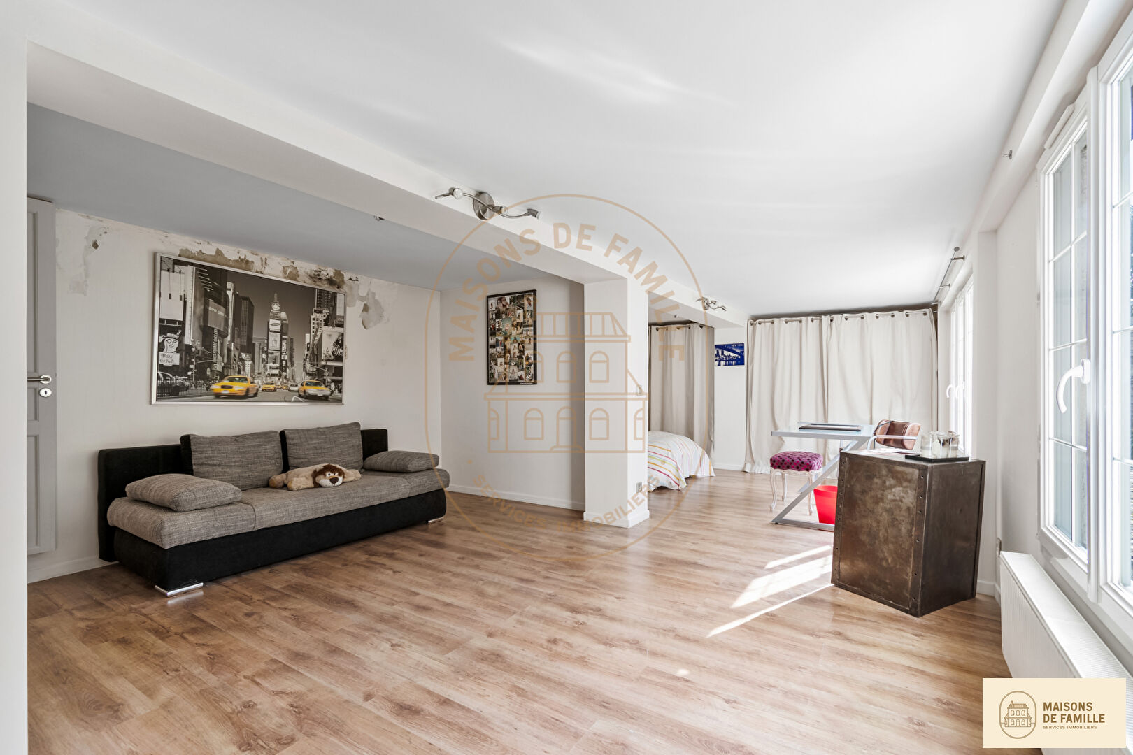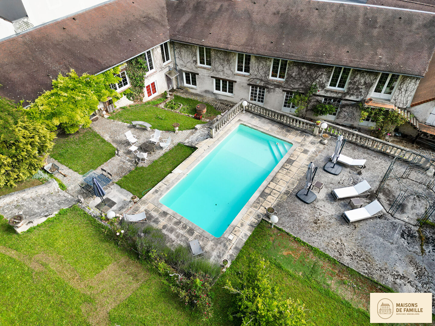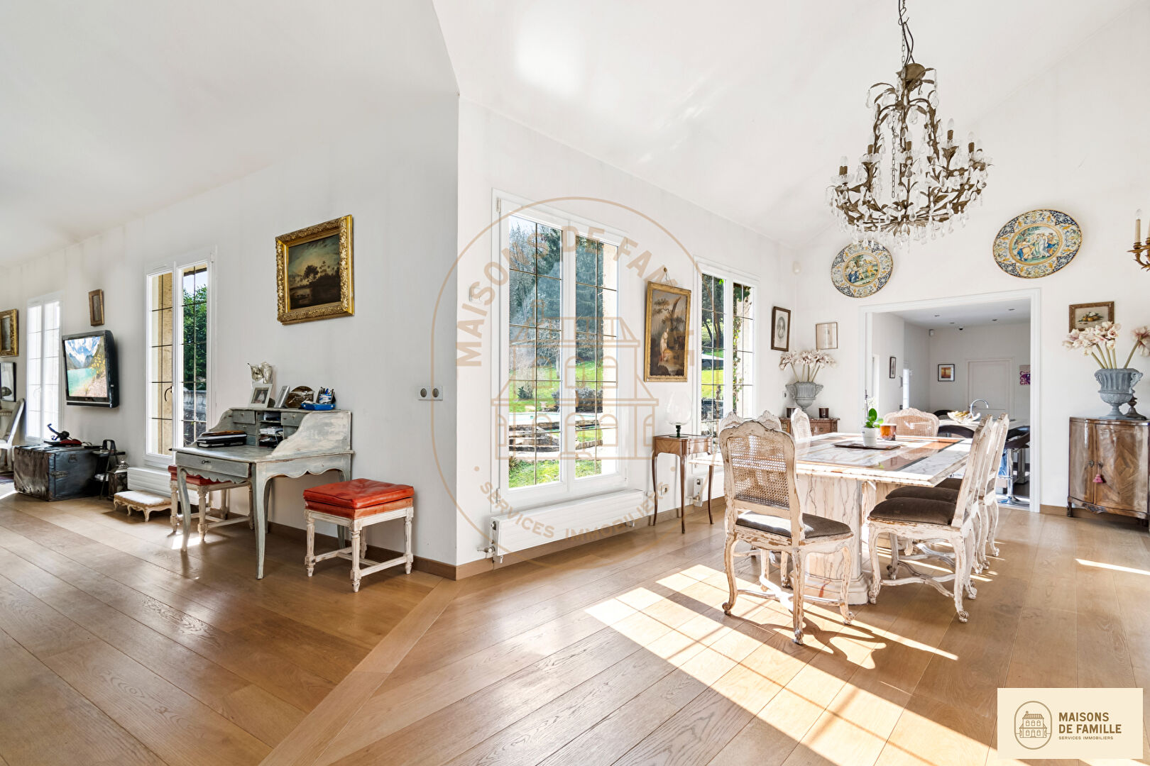 Exclusivité Maisons de Famille Immobilier, l'expert de la vente de Maisons dans l'ouest parisien. BOUGIVAL - Nous vous présentons *Sualem*, cette charmante demeure ancienne composée d'une partie habitation et d'une partie locative (appartement et locaux commerciaux). L'ensemble est construit sur plus de 2500m2 de terrain, bordé par la forêt. La maison principale se compose : Au rez-de-chaussée, d'une grande cuisine américaine aménagée et équipée ouverte sur la salle à un manger et le magnifique séjour avec cheminée de 80m2. Une grande suite parentale avec sa salle de bains et WC, une buanderie et un WC indépendant. Au rez-de-jardin, une grande chambre de 35m2 (possibilité 2 chambres), une salle d'eau avec WC ainsi qu'une grande pièce de 64m2 entièrement à rénover offrant plusieurs possibilités (chambres, salle de sport,..) Très beau jardin arboré avec grande piscine et terrasse. Double garage et remise. Ensuite, l'appartement indépendant se compte de la manière suivante : Séjour / salle à manger, cuisine, 3 chambres, salle de bains avec WC et WC séparé. Un local commercial de 22m2 avec vitrine sur rue et une grande surface commerciale. (Pouvant être transformer en un studio et un T2). Bus 259 desservant le RER de Saint-Germain-en-Laye en 10mn, Rueil centre en 15mn. École Sainte Thérèse de Bougival à 10mn à pied A proximité des établissements scolaires de Saint Germain en Laye. Contact direct : Antoine Duterque 07.62.44.80.08 (3.99 % honoraires TTC à la charge de l'acquéreur.)