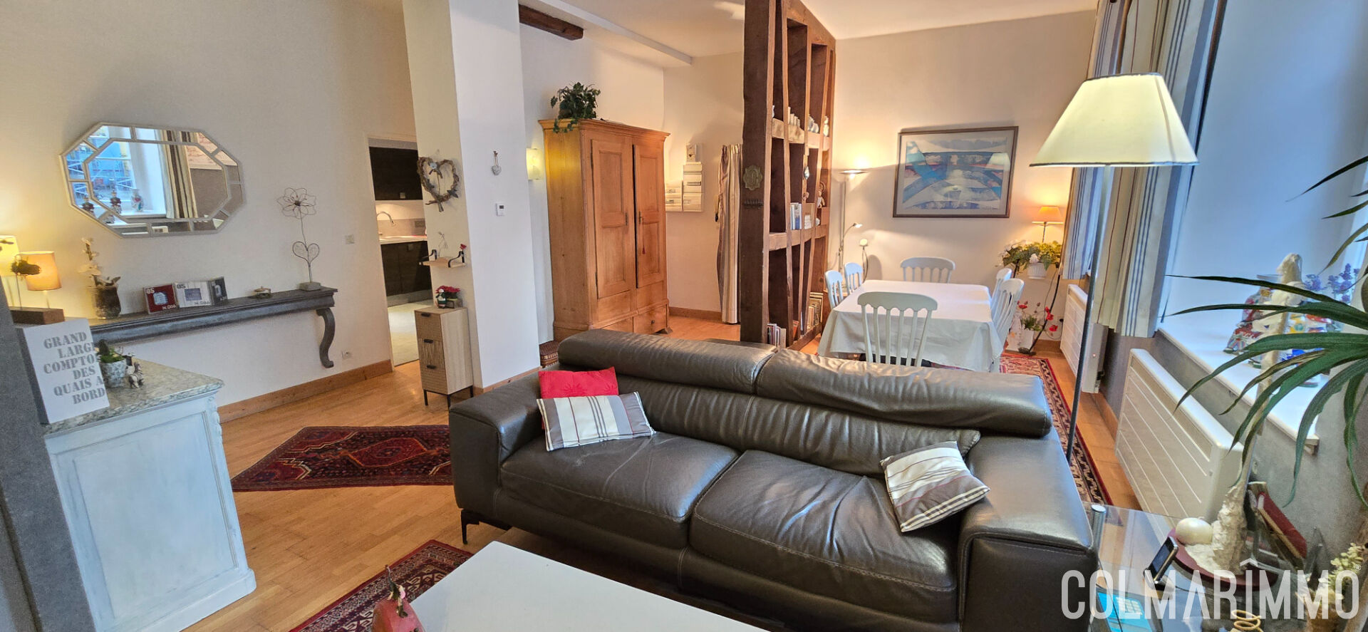 Nichée en plein hypercentre de Colmar, tout en étant à l'abri du tumulte urbain grâce à son emplacement privilégié, cette adresse rare conjugue calme, charme et praticité. Situé en rez-de-chaussée, cet appartement 3/4 pièces séduit dès l'entrée par ses volumes et sa belle hauteur sous plafond. Il se compose d'une entrée ouvrant sur un agréable salon-séjour, de deux chambres dont une avec un espace dressing, d'un débarras, d'une salle de bains complète avec baignoire et douche, d'un dégagement, d'une cuisine équipée, ainsi que d'un toilette indépendant. En annexes, vous bénéficierez d'une cave et d'un stationnement en sous-sol, un véritable atout en centre-ville. Un appartement plein de caractère, idéal pour celles et ceux qui recherchent un véritable cocon en coeur de ville. Copropriété de 37 lots - dont 15 lots habitation. Charges annuelles : 1105 euros.