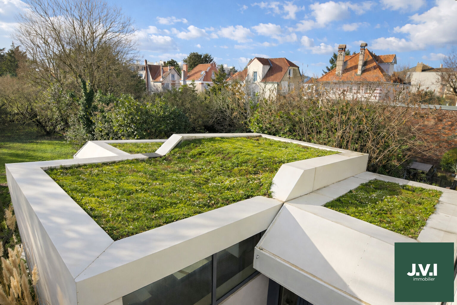 Sur une parcelle arborée de 1 067 m², cette élégante maison a fait l'objet d'une rénovation complète réalisée par architecte en 2011. Elle offre aujourd'hui 220 m² habitables, structurés autour d'une extension contemporaine de 65 m², aux lignes sobres et actuelles. La pièce de réception, généreusement ouverte, rassemble séjour, salle à manger et cuisine au sein d'un espace baigné de lumière. De larges baies vitrées prolongent naturellement la pièce vers une terrasse de 20 m² et le grand jardin paysager. Le chauffage au sol, associé à des climatisations réversibles, garantit un confort optimal en toute saison. L'espace nuit prend place dans la maison d'origine et comprend quatre chambres. Au rez-de-chaussée, une suite parentale complète avec bureau, salle de bains avec douche, dressing et buanderie. A l'étage, deux chambres disposent d'une salle de bains et partagent un grand dressing. Les combles aménagés proposent un volume modulable avec salle d'eau, pouvant accueillir une chambre supplémentaire, un atelier créatif ou un bureau indépendant. Le sous-sol semi-habitable (hauteur sous plafond 1,90 m) comprend une salle de projection sur mesure de 35 m² ainsi qu'une cave à vin. Un garage d'environ 20 m² avec double cellier complète la propriété, ainsi que 4 à 5 places de stationnement extérieures. Une propriété peu commune, mêlant avec finesse le cachet de l'ancien et l'écriture contemporaine, dans un environnement calme et verdoyant.