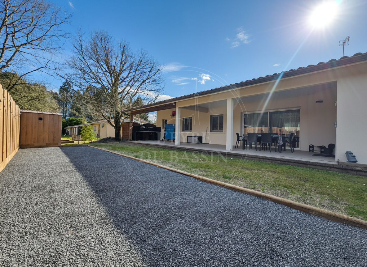 Maison familiale avec T2 indépendant sur une parcelle de 1274 m² idéalement située entre le BASSIN D'ARCACHON et BORDEAUX. Piscine et double garage Dans un environnement calme et agréable, au coeur d'un quartier résidentiel diffus, cette maison se développe avec une entrée avec placard, une vaste pièce de vie lumineuse deplus de 50 m², composée d'un salon-séjour avec poele à granulé et d'une cuisine ouverte aménagée et équipée. Un grand cellier attenant apporte un vrai confort au quotidien. Côté nuit, la maison offre 4 chambres, une salle de bains, ainsi que 2 WC séparés. A l'extérieur, vous profiterez pleinement avec une grande terrasse couverte, une piscine au sel et un boulodrome. Un double garage de plus de 30 m² vient parfaire l'ensemble. Atout majeur : un appartement T2 attenant mais totalement indépendant, parfait pour accueillir famille et amis ou envisager une location. Pour plus d'information contacter L'EYRE DU BASSIN Yoan LOUBAT : 07 86 28 85 40 (4.08 % honoraires TTC à la charge de l'acquéreur.)