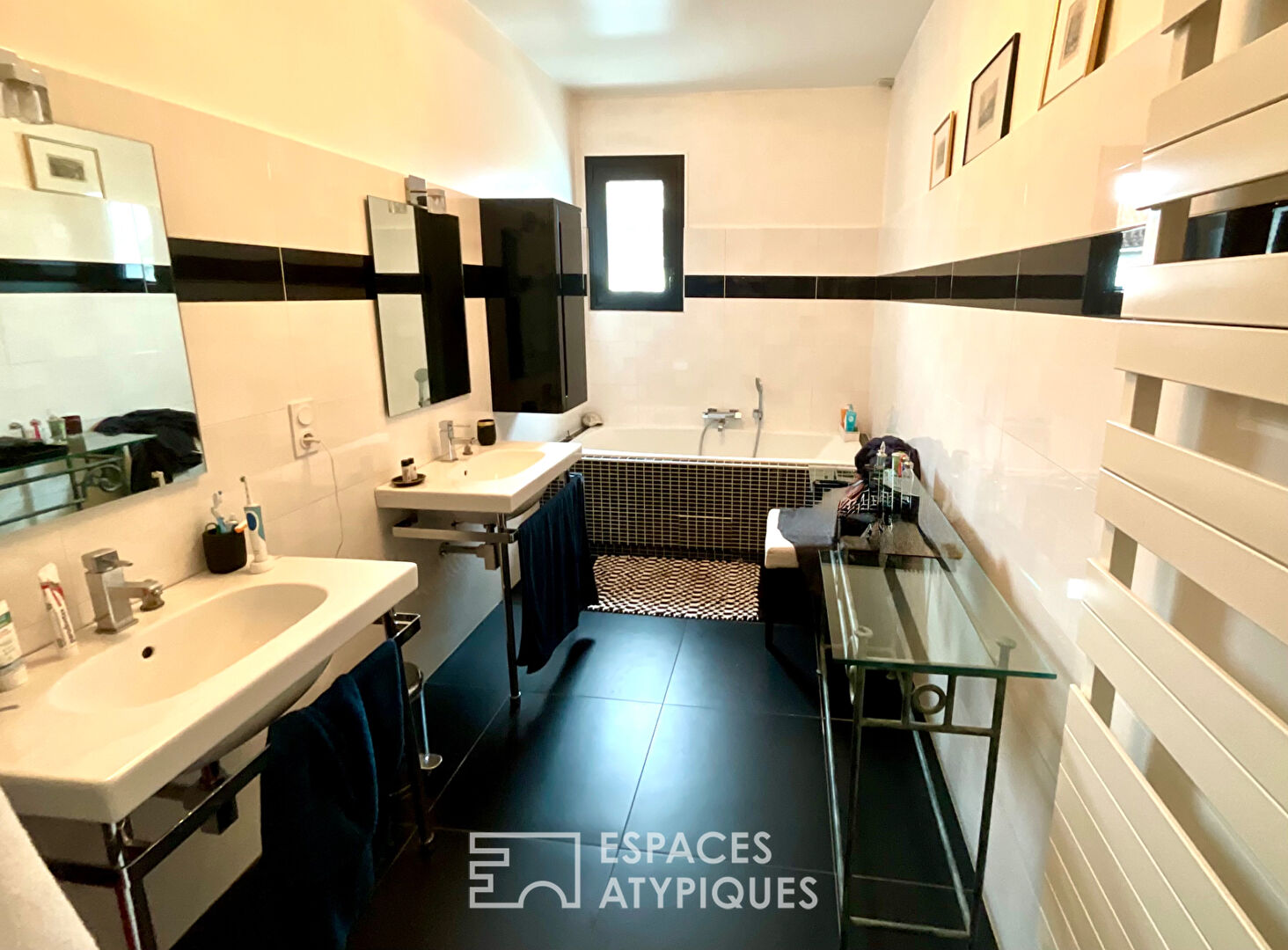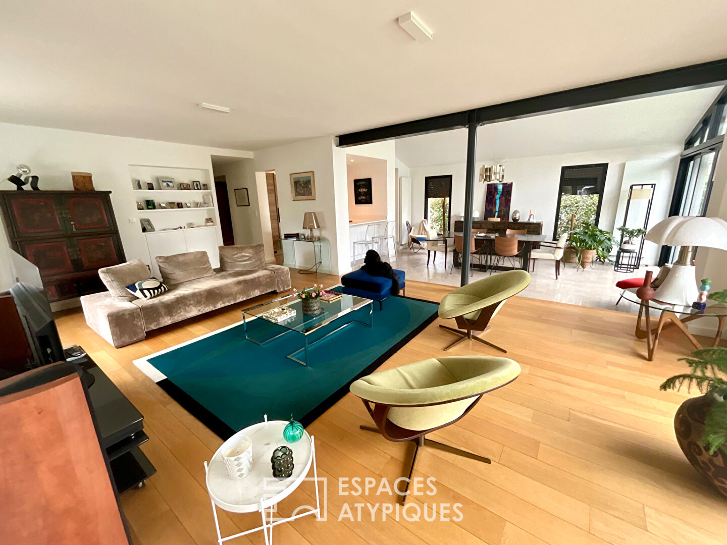 Au coeur du quartier résidentiel de Trespoey, cette maison des années 50 entièrement restructurée, propose 240 m² habitables ainsi qu'un jardin paysager de plus de 770 m2 avec piscine. L'espace de vie de plus de 70 m² aux lignes épurées et minimalistes fait cohabiter trois espaces en open space, avec une belle cuisine entièrement aménagée et équipée, délimité par un jeu de niveaux au sol ainsi qu'au plafond dévoilant des volumes époustouflants. Eclairé par de vastes baies vitrées en aluminium noir, se prolongeant sur la terrasse et son jardin intimiste. Le parti pris de l'architecte raconte l'histoire d'une inversion complète de la maison pour proposer la partie réception, séjour et cuisine en rez-de-jardin avec une extension fermée par une verrière type atelier d'artiste contemporain, qui prolonge la pièce à vivre. Pour compléter ce rez-de-chaussée, une chambre, une salle d'eau, un wc, une grande buanderie et le garage. L'étage, desservi par un bel escalier, métal et bois conduit vers l'espace nuit qui se compose de trois chambres dont une parentale immense et climatisée, avec une salle d'eau et grand dressing, un vaste bureau, un wc et une salle de bains. Ce niveau, offre la possibilité de créer une chambre supplémentaire. Un cadre de vie contemporain et chaleureux, à vivre en famille, à deux minutes à pied, de l'ensemble scolaire prisé de Saint Ursule. CLASSE ÉNERGIE : D / CLASSE CLIMAT : D Montant moyen estimé des dépenses annuelles d'énergie pour un usage standard, indexé sur les années 2021, 2022 et 2023 (abonnements compris) : entre 3050 euros et 4190 euros. Contact David DUCOS - Tel : 06 12 96 60 54 RSAC: 424 848 216 PAU David Ducos (EI) Agent Commercial - Numéro RSAC : 424 848 216 - PAU.