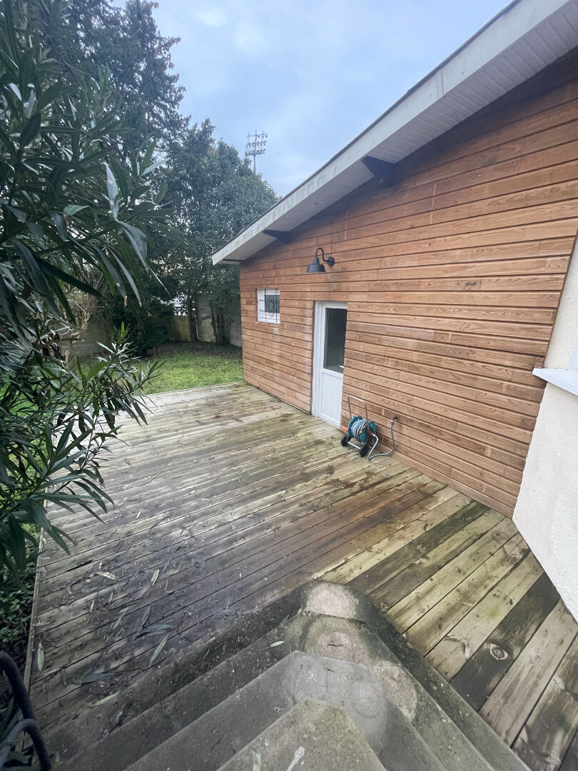BÈGLES - SECTEUR PISCINE - MAISON T4 DE PLAIN-PIED ENTIÈREMENT RÉNOVÉE Située à Bègles, dans le secteur recherché de la piscine, cette agréable maison de plain-pied entièrement rénovée développe une surface de 93 m². Elle se compose d'un séjour lumineux, d'une salle à manger conviviale et d'une cuisine ouverte aménagée, offrant un bel espace de vie fonctionnel et moderne. La partie nuit comprend deux chambres confortables avec une salle d'eau avec sanitaires ainsi que d'une suite avec salle d'eau et sanitaires, idéales pour une vie de famille. A l'extérieur, vous profiterez d'un beau jardin arboré de 160 m², parfait pour les moments de détente aux beaux jours. Le bien bénéficie d'un environnement calme tout en restant proche des commodités et des transports. La maison est louée vide et est disponible immédiatement. Honoraires à la charge du locataire : 1226,84 euros TTC dont 283,33 euros pour l'état des lieux Dépôt de garantie : 1 635 euros Montant des charges : 15 euros /mois Modalité de récupération des charges locatives : provision avec régularisation annuelle DPE D Consommation énergie primaire : 235 kWh/m²/an Consommation énergie finale : 102 kWh/m²/an Emission de gaz à effet de serre : 7 CO2/m²/an Montant estimé des dépenses annuelles d'énergie pour un usage standard compris : entre 1340 euros et 1860 euros par an. (Estimation réalisée à partir des prix énergétiques de référence de l'année 2021, 2022 et 2023) Date de réalisation du diagnostic : 28/11/2023 Les informations sur les risques auxquels ce bien est exposé sont disponibles sur le site Géorisques : www.georisques.gouv.fr Bien proposé par Madame DAELMAN ABCD'IMMO Référence annonce : 660