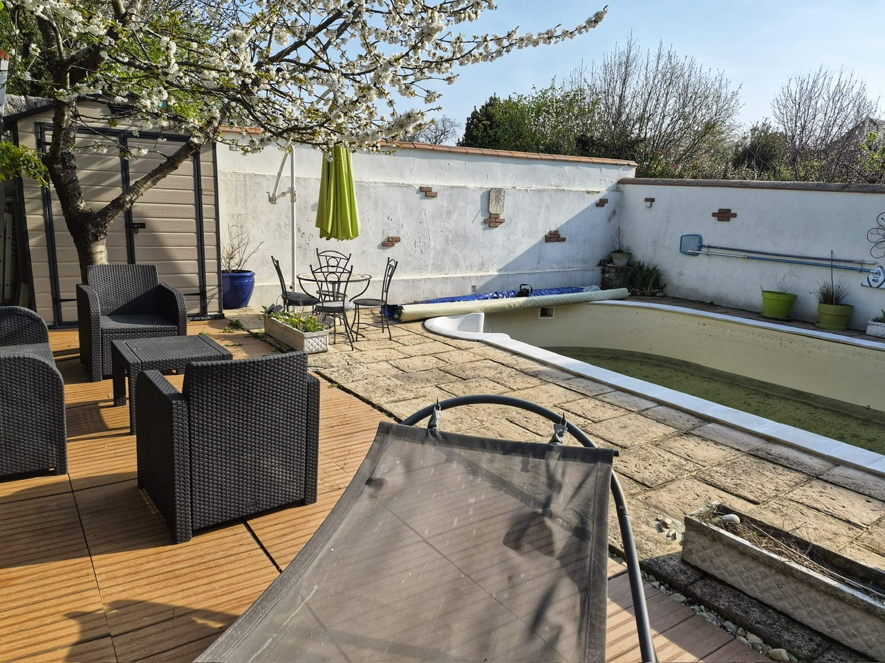 Située en plein centre-ville de Pierrelaye, au sein d'une petite copropriété, découvrez cette superbe maison de ville à la décoration soignée et réalisée avec goût, offrant un cadre de vie rare et privilégié. Dès l'entrée, vous serez séduit par un séjour double lumineux, idéal pour recevoir, ainsi qu'une cuisine américaine entièrement équipée, ouverte sur la pièce de vie. Un WC complète le rez-de-chaussée. A l'étage, un palier dessert : deux chambres, dont une avec accès à une agréable terrasse, un WC indépendant, ainsi qu'une suite parentale avec salle de bains, WC et rangements. A l'extérieur, vous profiterez d'un véritable havre de paix avec un jardin privatif et une piscine privée, parfaits pour vos moments de détente en famille ou entre amis. Une cave ainsi qu'un stationnement privatif viennent compléter ce bien. Vos conseillers Stephane et Mathiou (rsac 890133879) (4.67 % honoraires TTC à la charge de l'acquéreur.) Copropriété de 11 lots - dont 6 lots habitation. Charges annuelles : 1600 euros.
