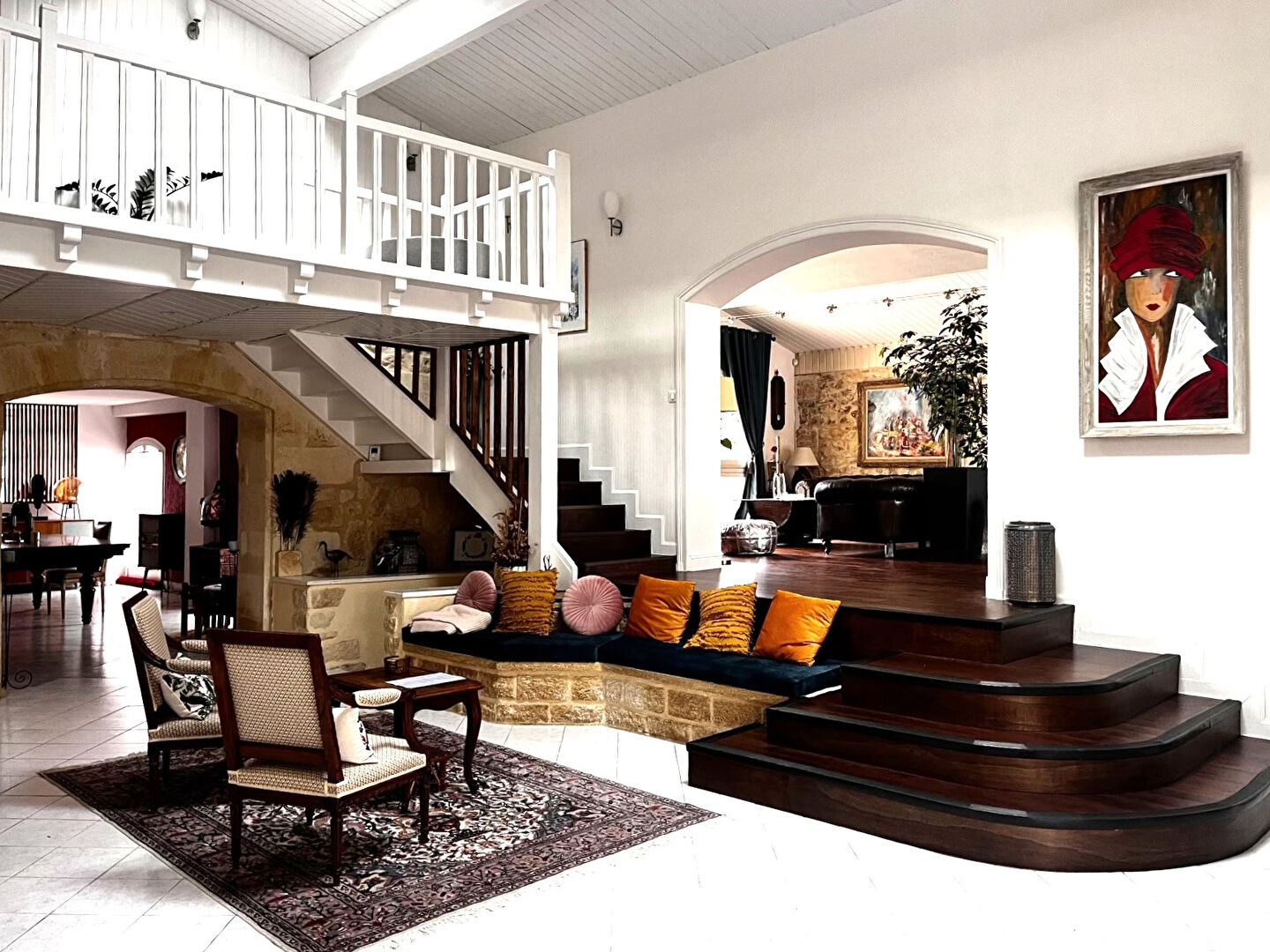 A quelques minutes de Langoiran, au coeur du village de Capian, opportunité rare pour entrepreneurs et professions libérales. Cette maison d'environ 320 m², implantée sur une parcelle de 765 m² avec piscine et terrasse, se prête parfaitement à un projet professionnel (bien-être, maison d'hôtes, cabinet, activité libérale?). Elle offre de nombreux espaces nuit avec suites parentales, un sauna, ainsi qu'un vaste espace de vie lumineux comprenant double salon-salle à manger avec cheminée, cuisine et véranda. A l'extérieur, plusieurs espaces aménagés permettent de profiter des lieux toute l'année, sans vis-à-vis. Stationnement aisé avec garage fermé et carport. Pompe à chaleur air/eau récente, piscine avec local technique et buanderie en souplex. DPE : Cat.B Honoraires à charge de l'acquéreur à hauteur 3.33% (soit 450 000 euros hors honoraires). Les informations sur les risques auxquels ce bien est exposé sont disponibles sur le site Géorisques www.georisques.gouv.fr (3.33 % honoraires TTC à la charge de l'acquéreur.) Stéphanie MOULINET (EI) Agent Commercial - Numéro RSAC : 883335259 - BORDEAUX.