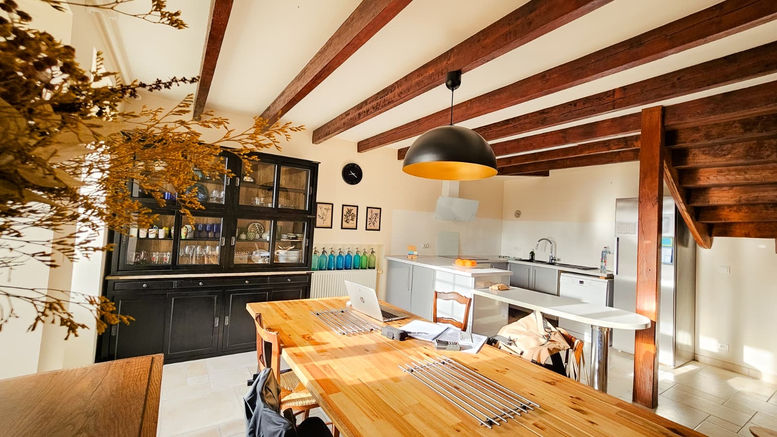 Située sur la commune de Sireuil, cette maison d'environ 98m2 habitables est implantée sur un terrain de 748m2 et offre un fort potentiel d'évolution avec une possibilité d'agrandissement d' environ 40m2. Rez- de- Chaussée: -Entrée spacieuse de 11m2 environ -Buanderie de 6,70m2 -Belle pièce de vie composée d'une cuisine aménagée et équipée ouverte sur salle à manger (25m2) -WC indépendant Etage: -Chambre de 14,17m2 -Bureau de 7,3m2 pouvant faire office de chambre d'appoint -Salon lumineux de 23m2 -Salle d'eau de 4,88m2 -Dressing de 4m2 Dépendances et extérieurs: -Jardin non attenant mais face à la maison -double garage en pierre de Sireuil Alex Fremont (EI) Agent Commercial - Numéro RSAC : - .