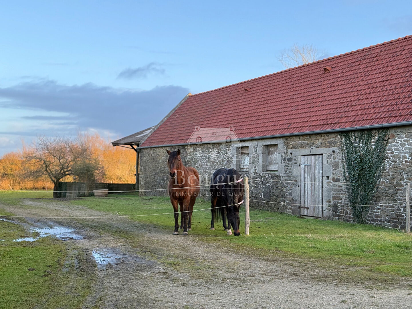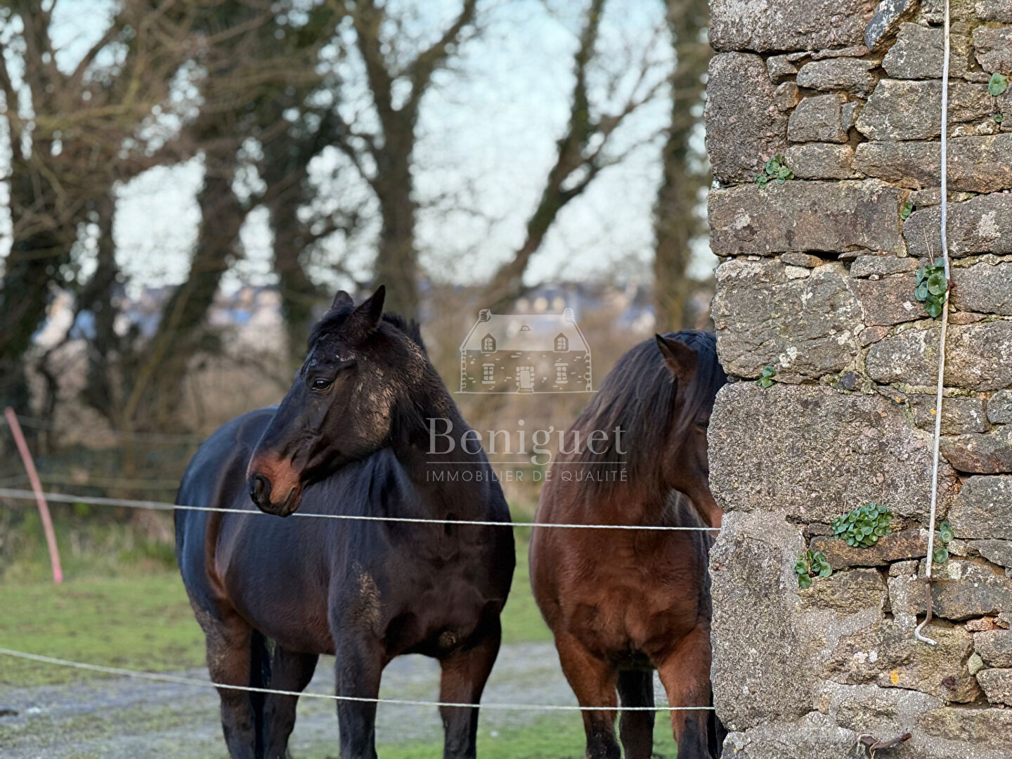 BRETAGNE - NORD FINISTÈRE -PLOURIN A Plourin, au coeur d'un environnement naturel préservé, ce corps de ferme rénové propose un art de vivre rare, pensé pour les amoureux d'espace et de passion équestre. Dès l'entrée, la propriété séduit par son atmosphère chaleureuse et authentique. La maison d'habitation s'ouvre sur un salon-séjour baigné de lumière, sublimé par de larges baies vitrées offrant une vue directe et apaisante sur la verdure et vos chevaux : un véritable tableau vivant que l'on contemple confortablement installer. La cuisine ouverte, à la fois fonctionnelle et conviviale, complète harmonieusement cet espace de vie. Au même niveau, une pièce laisse libre cours à votre imagination : grand salon, chambres supplémentaires, salle de danse ou espace dédié à vos projets personnels. A l'étage, un dégagement dessert trois chambres, une salle d'eau ainsi qu'un WC. Le deuxième étage accueille un grenier offrant un beau potentiel d'aménagement supplémentaire. A l'extérieur, la propriété s'ouvre sur un agréable parc de plus 1 ha et un hangar parfaitement adapté à un usage équestre ou au stockage. Entièrement pensée pour l'accueil de chevaux, cette propriété conjugue avec confort, nature et art de vivre, dans un cadre harmonieux et privilégié. Pour de plus amples renseignements ou pour organiser une visite, n'hésitez pas à nous contacter. Thomas ULVOAS Votre conseiller chez Béniguet Immobilier 02 98 38 10 90 // 07 72 41 02 15 (4.70 % honoraires TTC à la charge de l'acquéreur.)