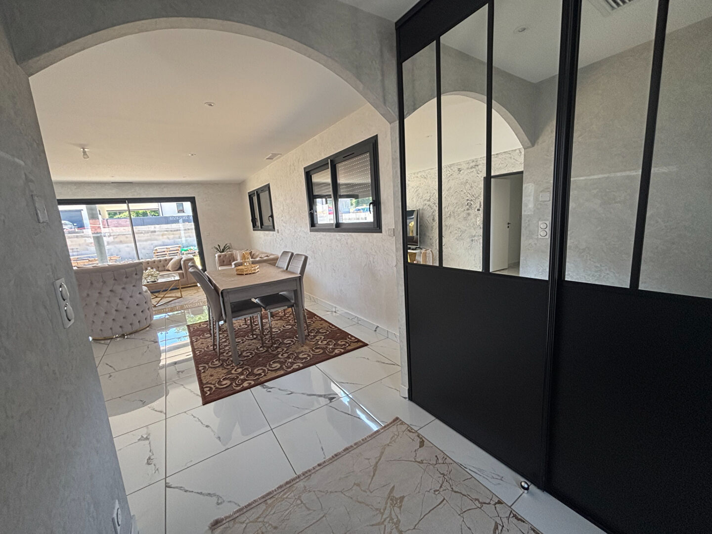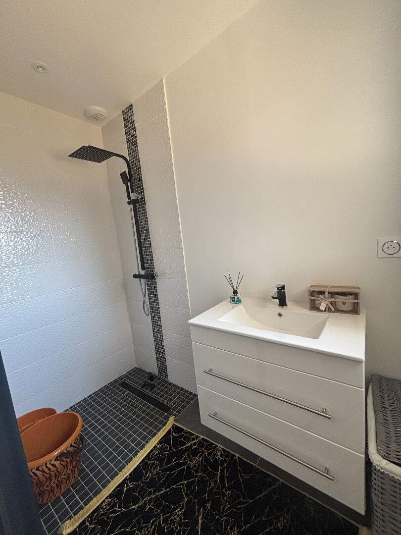 Dans un environnement calme et résidentiel, venez découvrir cette belle maison contemporaine de plain-pied, prête à emménager, sans aucun travaux à prévoir. Elle se compose d'une entrée avec placard, d'un salon-séjour spacieux et lumineux, d'une cuisine ouverte, entièrement aménagée et équipée, d'un cellier, d'une arrière-cuisine et d'un garage attenant. Côté nuit, vous bénéficiez de trois chambres, dont une suite parentale avec dressing et salle d'eau privative, d'une seconde salle d'eau indépendante et d'un WC séparé avec lave-mains. Confort garanti toute l'année grâce au chauffage gainable conforme à la réglementation thermique RT 2012, vous assurant performance énergétique et économie. A l'extérieur, une grande terrasse couverte vous attend pour profiter des beaux jours. Le terrain, entièrement clos et sécurisé par un portail électrique, offre un cadre de vie paisible et pratique. Une maison récente, bien pensée, alliant modernité, confort et tranquillité. A visiter sans tarder ! Les honoraires sont à la charge du vendeur ! Montant estimé des dépenses annuelles d'énergie pour un usage standard : entre 340 euros et 500 euros par an. Prix moyens des énergies indexés sur les années de référence 2021, 2022, 2023 (abonnements compris)