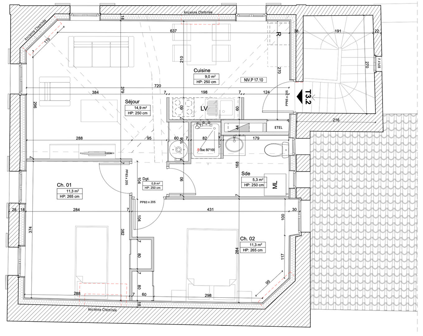 Nouveau programme neuf en hyper centre de Rochefort, en De Normandie ou en vente traditionnel frais réduit. Un T3 au 2eme étage d'une copropriété de 5 lots comprenant local vélos et poubelle. Une entrée donnant sur un espace salon-séjour-cuisine aménagée et équipée, 2 chambres et une salle d'eau avec wc. - emplacement hyper centre ville - parking gratuit à 200 m. - quartier calme - petite copropriété plan d'appartement non contractuel créé par IA. Copropriété de 5 lots (). Charges annuelles : 200 euros.