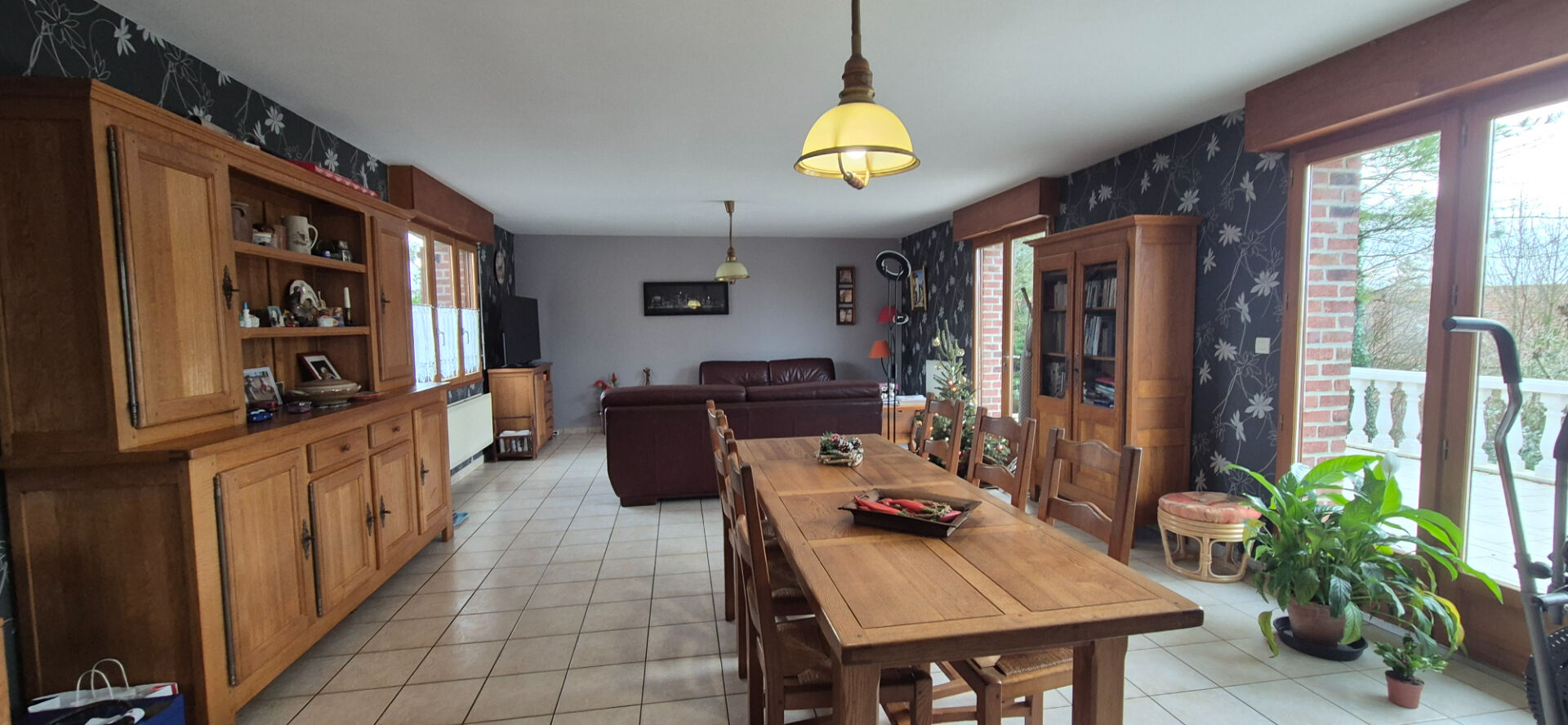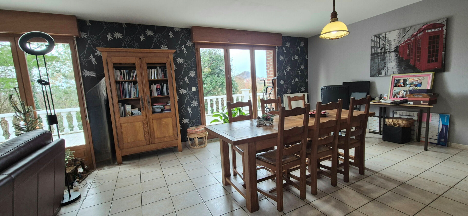 Maison en semi plain-pied qui vous offre tous les atouts d'une maison à la campagne avec toutes les commodités à proximité. Dès l'entrée vous découvrez un bel espace qui dessert un salon séjour de plus de 40m² donnant sur une belle terrasse carrelée sans vis à vis, une cuisine aménagée et équipée, une salle d'eau, un WC et une chambre. A l'étage, un vaste palier qui distribue 3 chambres dont une avec dressing, un WC et une salle de bain. Le bien possède un sous sol complet avec garage, chaufferie et buanderie. La maison est équipée d' un portail électrique et d'une grande allée permettant de stationner ! A découvrir sans tarder! (4.55 % honoraires TTC à la charge de l'acquéreur.)