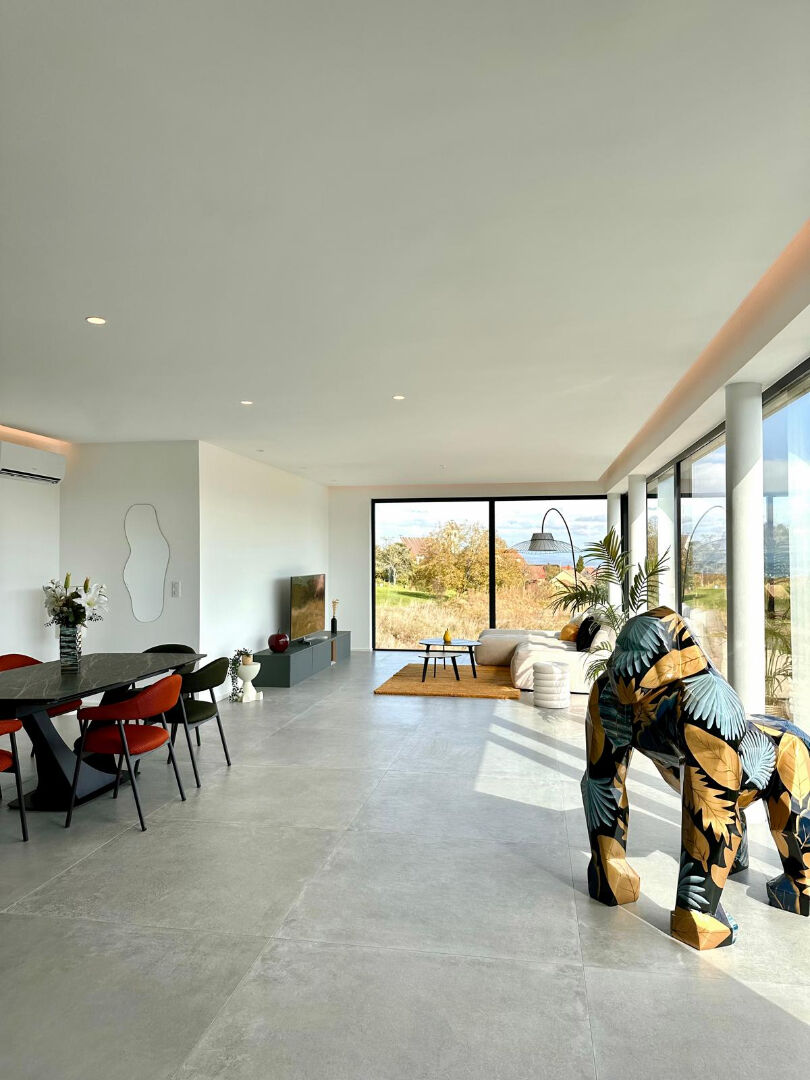 A Folgensbourg, dans un environnement résidentiel calme et recherché, à proximité immédiate du golf et de la frontière suisse, découvrez cette propriété d'exception proposée au prix de 1 150 000 euros. HFA Réalisée en 2025, cette villa d'architecte de 260 m² a été pensée de manière inversée et contemporaine l'espace de vie principal se situe au premier étage afin de profiter pleinement de la lumière et de la vue dégagée sur les montagnes. Dès l'entrée, le rez-de-chaussée offre une organisation fonctionnelle et élégante : une chambre, un bureau idéal pour le télétravail, une salle d'eau, une buanderie, une cave à vin, un local technique ainsi qu'un garage de 35 m² avec porte motorisée. A l'étage, le coeur de la maison se dévoile. Un espace de vie de plus de 70 m² comprenant séjour, salle à manger et cuisine ouverte, baigné de lumière grâce aux larges ouvertures. Cet étage s'ouvre directement sur une magnifique terrasse accessible de près de 40 m², créant une continuité parfaite entre intérieur et extérieur et offrant un panorama remarquable. Le dernier niveau accueille l'espace nuit avec trois chambres supplémentaires, dont une superbe suite parentale de plus de 22 m² avec dressing, ainsi que deux salles de bains aux finitions soignées. Un espace dégagement pouvant faire office de coin jeux ou salon privé complète l'ensemble. Édifiée sur un terrain de 7 ares, la propriété bénéficie également d'une piscine à débordement élégante, parfaitement intégrée à l'architecture de la maison. Chauffage au sol par pompe à chaleur, menuiseries double vitrage, volets roulants électriques, prestations contemporaines chaque détail a été pensé pour allier design, confort et performance énergétique. Cette villa n'est pas simplement une maison. C'est une architecture pensée pour vivre la lumière, la hauteur et la vue. CONTACT : Sophie GLASER Directrice Transaction et Gestion d'Actifs Immobiliers PRIX : 1 150 000 euros HONORAIRES CHARGES ACQUEREUR : 50 000 euros RÉFÉRENCE : 502 CLASSE ÉNERGIE : A Honoraires à la charge du vendeur. Le constructeur doit fournir une attestation de conformité RE2020. Contactez STABULUM IMMOBILIER dès aujourd'hui pour organiser une visite et découvrir tout son potentiel. Laissez-vous séduire par cet attique d'exception ! Sophie GLASER (EI) Agent Commercial - Numéro RSAC : - .