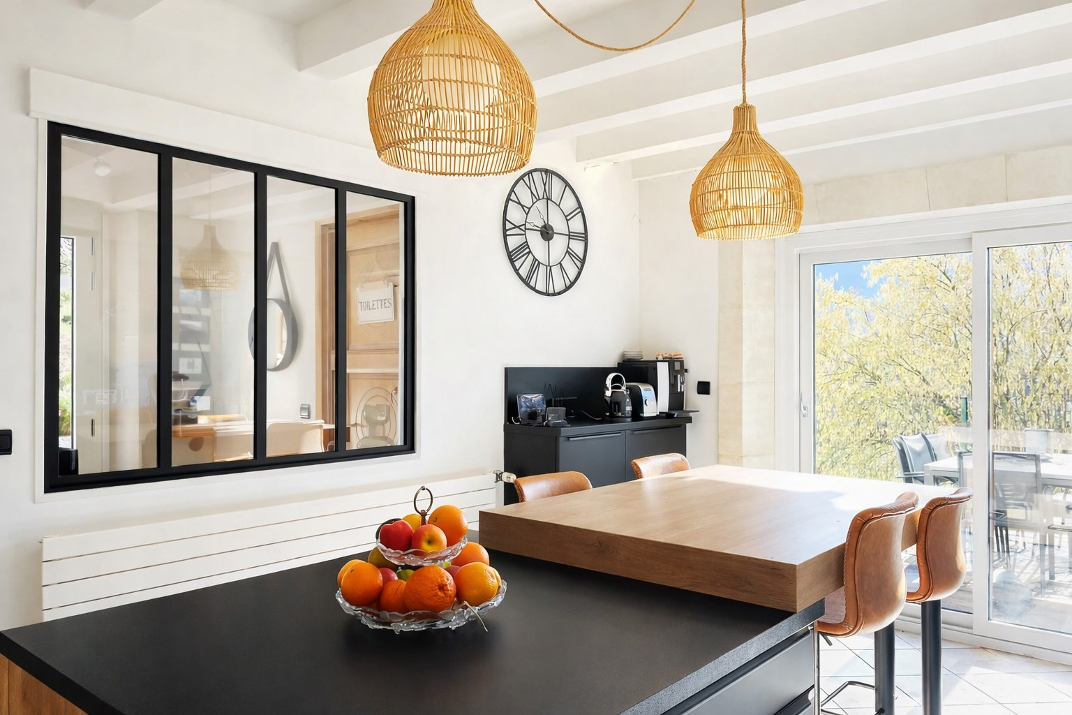 Dans un environnement privilégié, au calme absolu, découvrez cette superbe maison de caractère de 5 pièces alliant avec élégance l'authenticité de l'ancien et des prestations contemporaines haut de gamme. Un bien rare, entièrement rénové avec goût, ne nécessitant aucun travaux. Dès l'entrée, vous serez séduit par la vue sur la magnifique cuisine, véritable pièce maîtresse entièrement aménagée et équipée avec des prestations de qualité, incluant une cave à vin intégrée, idéale pour recevoir avec élégance. A l étage, une magnifique pièce de vie baignée de lumière, sublimée par une cheminée centrale qui apporte charme et raffinement à l'ensemble. Les volumes généreux et les matériaux soigneusement sélectionnés créent une atmosphère chaleureuse et prestigieuse. L'espace nuit se compose de trois chambres, dont une superbe chambre en mezzanine avec dressing, offrant un esprit loft à la fois intime et raffiné. Chaque espace a été pensé pour conjuguer confort, esthétisme et fonctionnalité. A l'extérieur, le jardin arboré et délicatement fleuri, parfaitement entretenu, dévoile différents espaces de détente. Vous profiterez d'une terrasse couverte élégante, d'une terrasse extérieure ensoleillée ainsi que d'une charmante buvette de jardin, idéale pour partager des moments conviviaux entre amis ou en famille. L'ensemble bénéficie d'une vue dégagée exceptionnelle sur les montagnes environnantes, offrant un panorama spectaculaire en toute saison. Cette propriété séduit par son cachet, sa modernité, ses extérieurs soignés et son cadre naturel privilégié. Une opportunité rare pour les amateurs de biens de caractère à la recherche d'un art de vivre unique. Bien d'exception à découvrir sans tarder. Nouveau DPE en cours