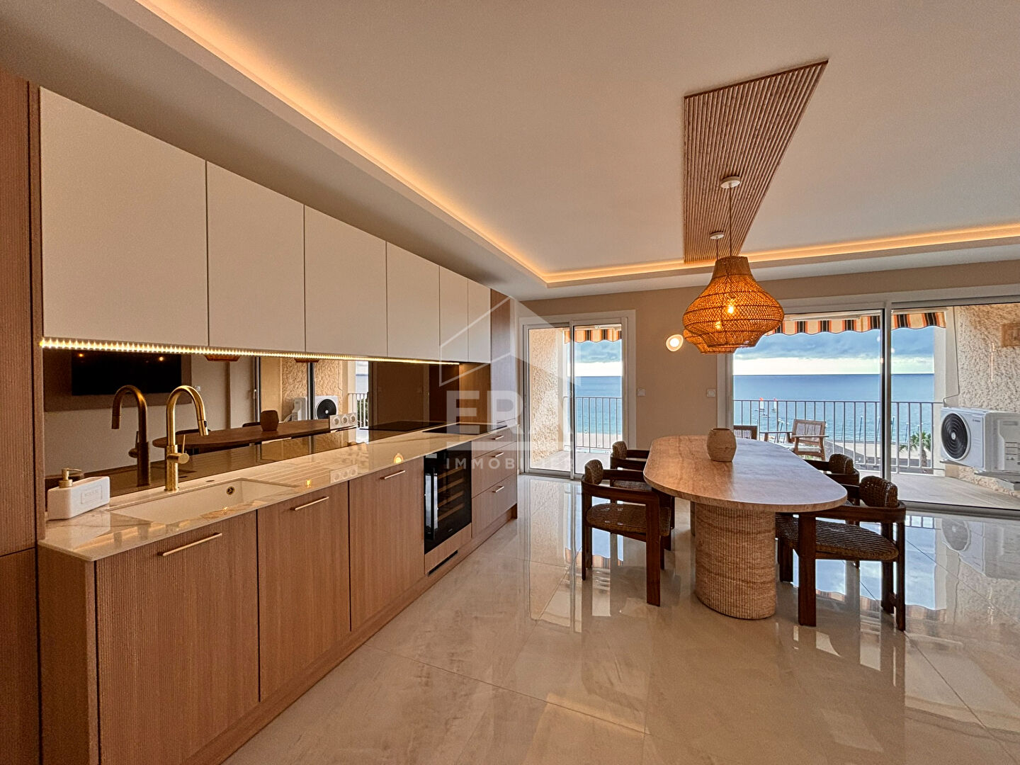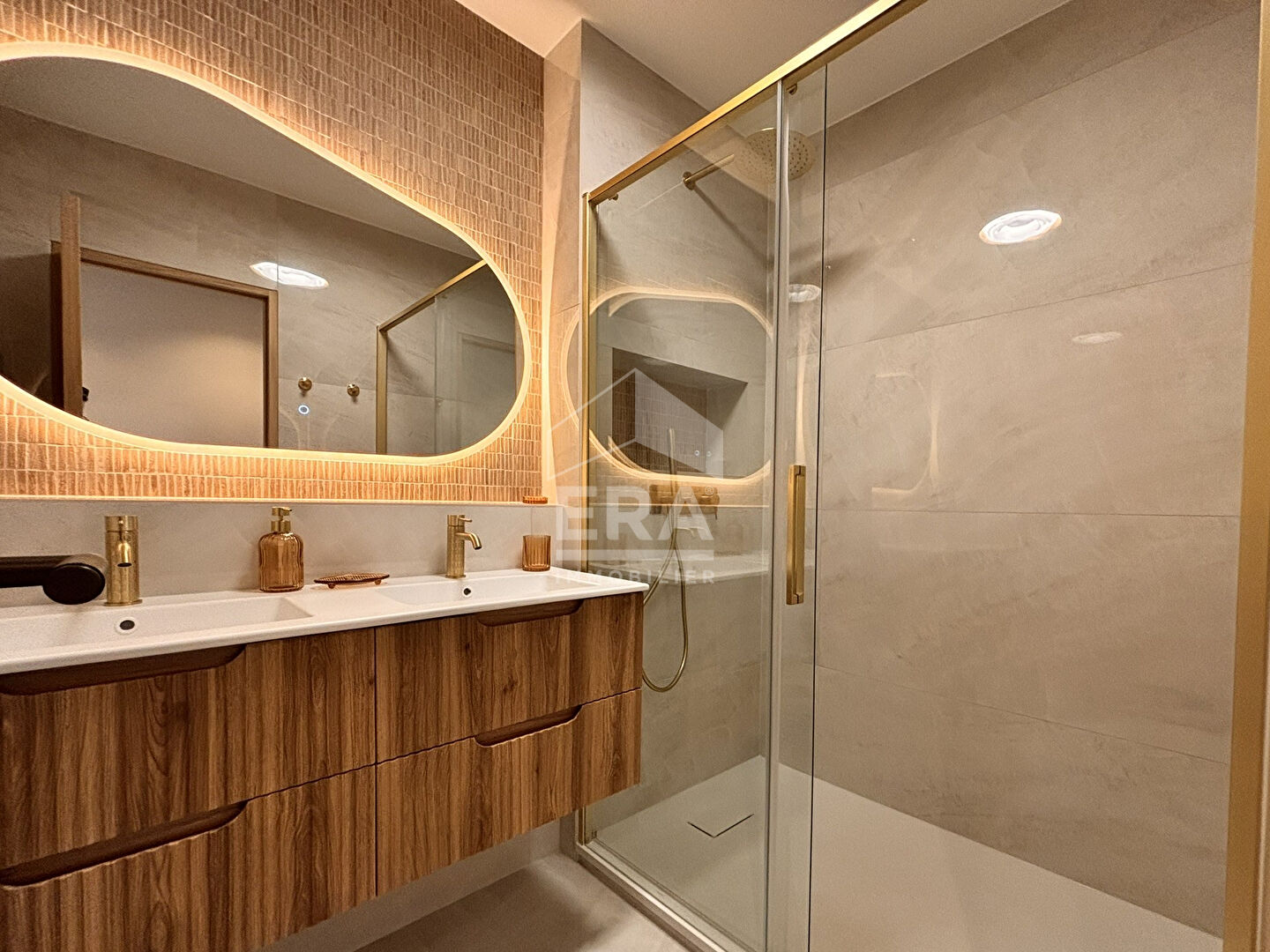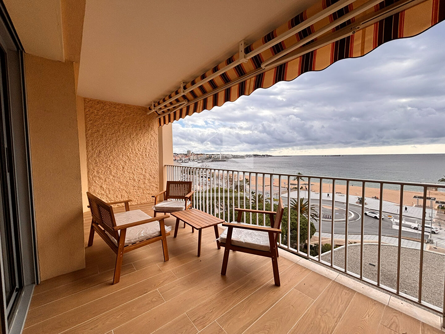 Votre Agence ERA met en avant pour l'une ou l'un d'entre vous, en exclusivité, dans une résidence très prisée sur FREJUS-PLAGE et en front de mer, Une Proposition Unique en étage élevé. Appartement de type 3 pièces Face et en Front de mer, D'une rénovation avec des matériaux nobles et de très belle qualité, ce bien a été repensé et rénové du sol au plafond. Composé, par l'entrée d'un hall desservant le volume de vie, cuisine ouverte sur salon et sur terrasse, une chambre premium avec dressing, une seconde chambre avec placard, une salle de douche, un WC indépendant. Des prestations sur mesure et des finitions "cousu mains". Une vue sur mer à couper le souffle, une exposition sud, une situation centrale avec les commerces à pieds. Cette rénovation a été réfléchie et soigneusement menée et encadrée par une architecte d'intérieur, relevant dans chaque pièces, les détails faisant de ce bien, une véritable composition, de bon goût et très soignée. Les indispensables, pour un achat en toute quiétude : Garage sous-sol inclus , cave, Climatisation dans toutes les pièces, vidéophone, porte blindée, documents de garantie fournis sur chacun des postes de rénovation (électricité, cuisine et électroménager, huisseries et menuiseries intérieures/extérieures, plomberie, carrelage, peinture, groupe clim, store, etc...) IMPORTANT : Chacune des photos utilisée sur cette annonce sont des photos réalistes virtuelles. Copropriété de 60 lots - dont 68 lots habitation. Charges annuelles : 3600 euros.