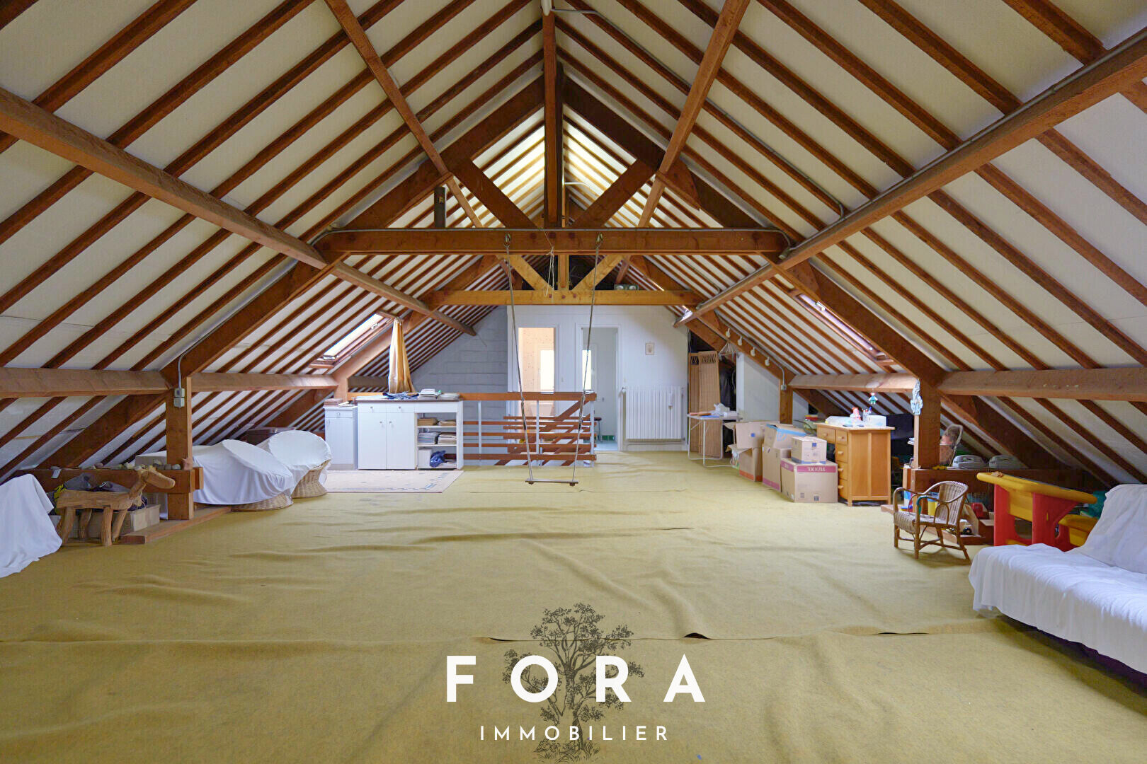 Votre agence FORA IMMOBILIER a le plaisir de vous proposer en exclusivité ce beau pavillon conçu par un architecte, offrant une surface habitable d'environ 190 m², avec sous-sol complet, édifié sur une parcelle arborée de 2 460 m². Vous bénéficiez également d'une seconde parcelle constructible d'environ 2 000 m², actuellement inexploitée. Au rez-de-chaussée, une entrée spacieuse vous accueille. Sur sa gauche, l'espace nuit se compose de trois chambres d'environ 10 m² chacune, d'une salle d'eau partiellement rénovée avec douche à l'italienne, d'une buanderie pouvant faire office d'espace bureau et d'un WC. La cuisine aménagée, fonctionnelle, est équipée de nombreux rangements sur-mesure. Une belle pièce de vie d'environ 40 m² avec cheminée à foyer ouvert, exposée plein sud, est baignée de lumière complètent ce niveau. A l'étage, vous profiterez d'un superbe espace de plus de 80 m² (surface Carrez), actuellement aménagé en mezzanine, mais pouvant facilement être reconfiguré en plusieurs chambres, pièces d'eau, salle de jeux, etc. Le plus de ce niveau : un WC et une salle d'eau y sont déjà aménagés. A l'extérieur, vous bénéficierez d'un jardin clos et arboré, bien entretenu, comprenant une terrasse exposée plein sud avec vue dégagée. Un garage de plus de 30 m², offrant un espace de stationnement. Contactez-nous rapidement afin d'obtenir plus de renseignements ou pour programmer une visite avec votre agence FORA IMMOBILIER !