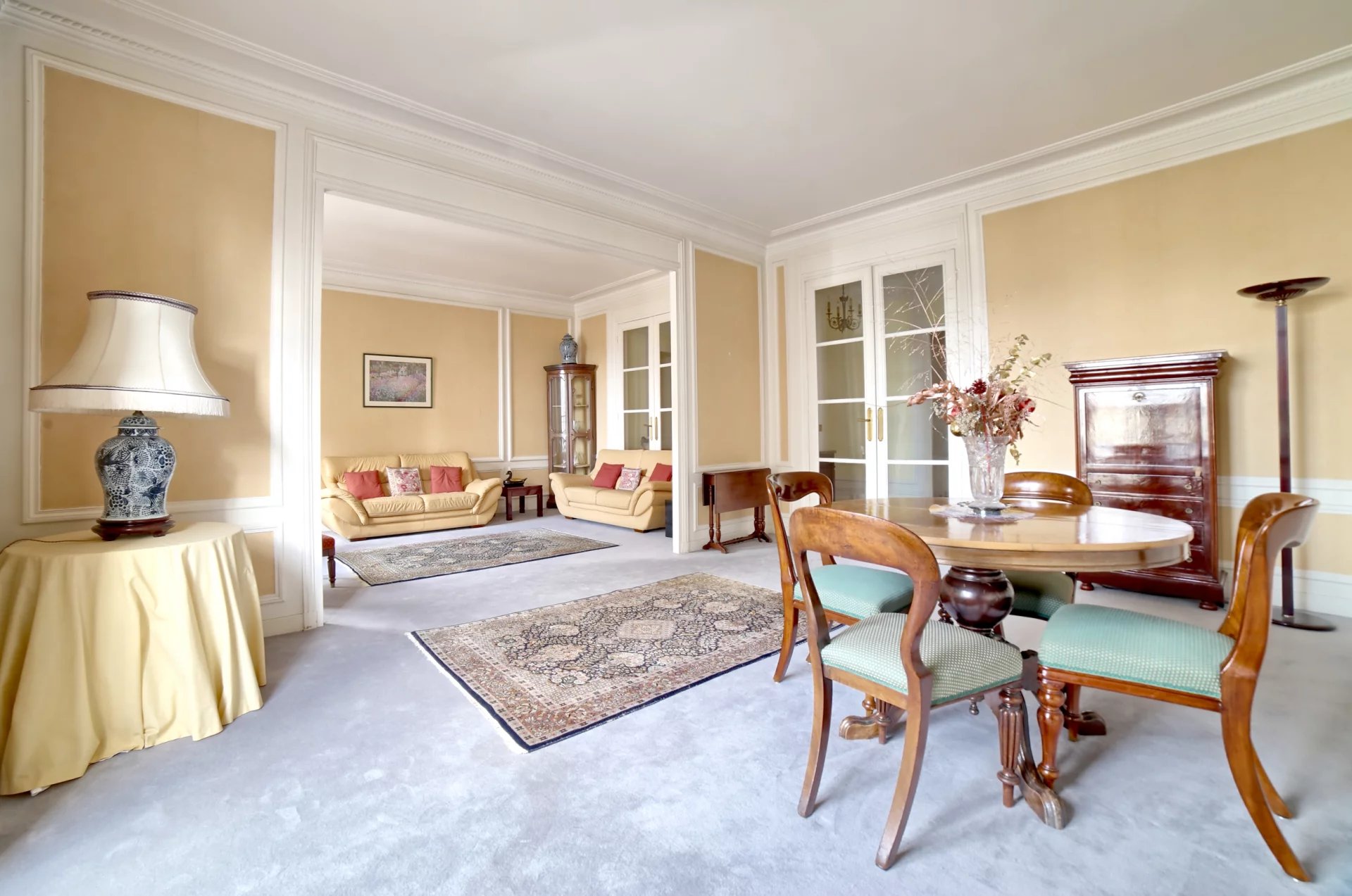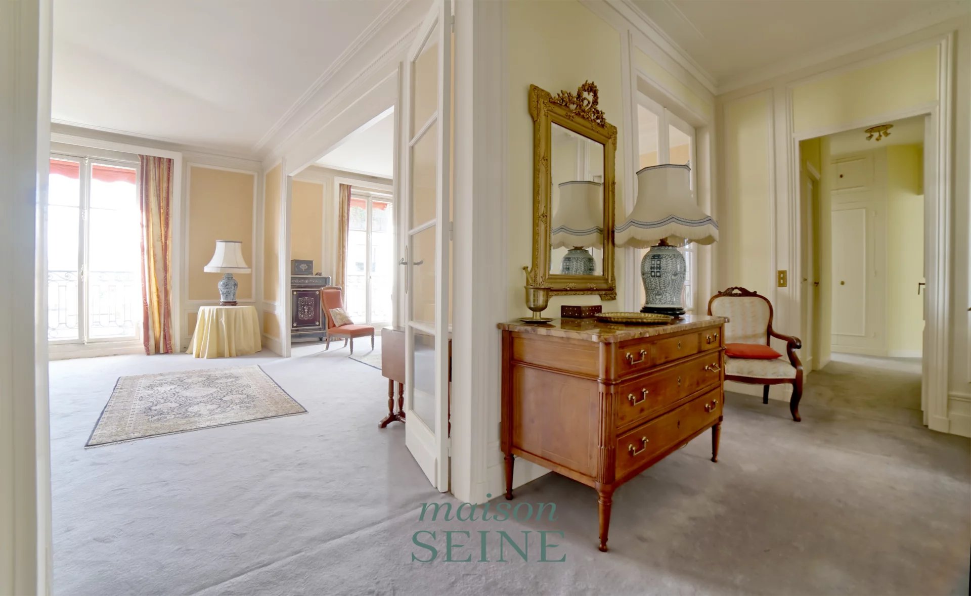 Au 4ème étage d'un immeuble années 30 de très bon standing avec gardien et ascenseur, appartement d'une superficie de 151,06 m² carrez (155,39 m² au sol) comprenant une élégante galerie d'entrée desservant un double séjour avec parquet point de Hongrie, très belle hauteur sous plafond et de grandes huisseries. A la suite, une cuisine indépendante meublée, trois chambres (configuration en quatre chambres possible), deux salle de bains, une salle de douche, une grande buanderie, un toilette indépendant et de nombreux rangements.