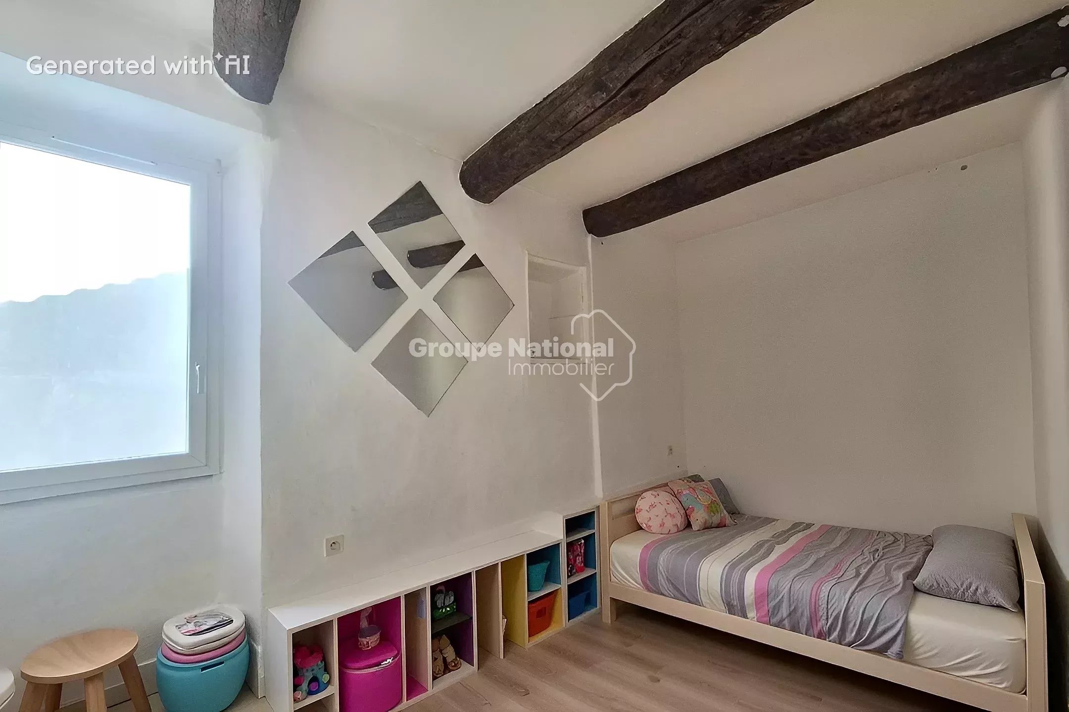 - Au 1er étage : 2 belles chambres dont une de 17m² et une salle d'eau avec WC.