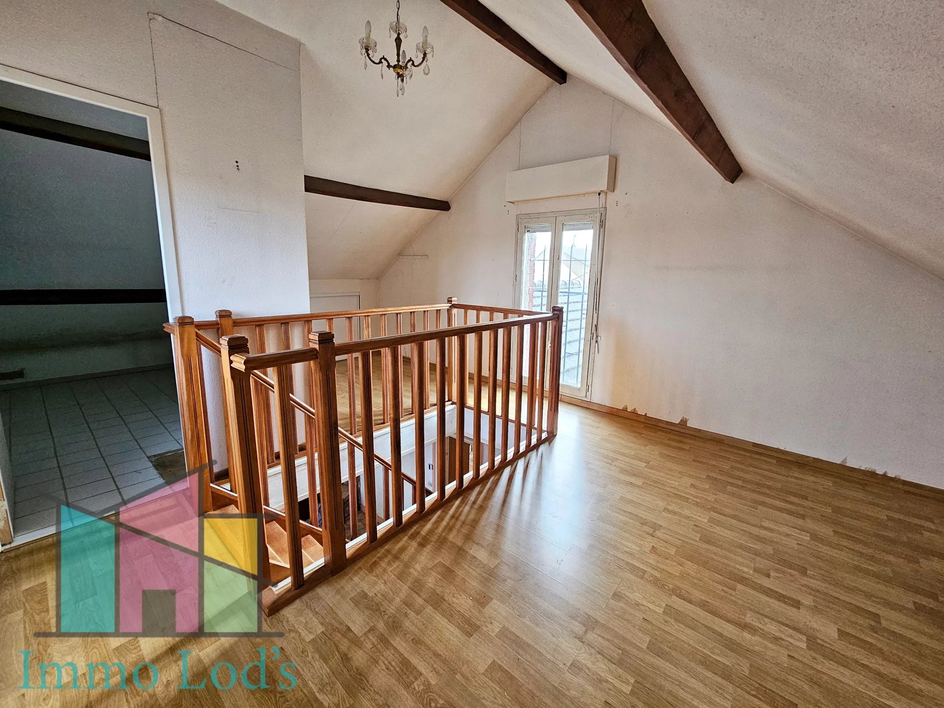A proximité des commerces et transports, cette agréable maison individuelle de 65 m2 se compose comme suit: Au rez-de-chaussée : une entrée avec placard, un séjour de 16 m², une cuisine aménagée de 15,9 m², une belle chambre traversante de 15 m², une salle de douche ainsi qu'un WC séparé. Au premier : Une grande chambre sous mansarde de 13 m² (28 m² au sol) Le tout sur une cave partielle de 16 m². La maison s'accompagne d'un atelier de 11 m² en enfilade du garage. Les plus : Huisseries double vitrage, volets roulants électriques, portail électrique, porte de garage motorisée, secteur calme.