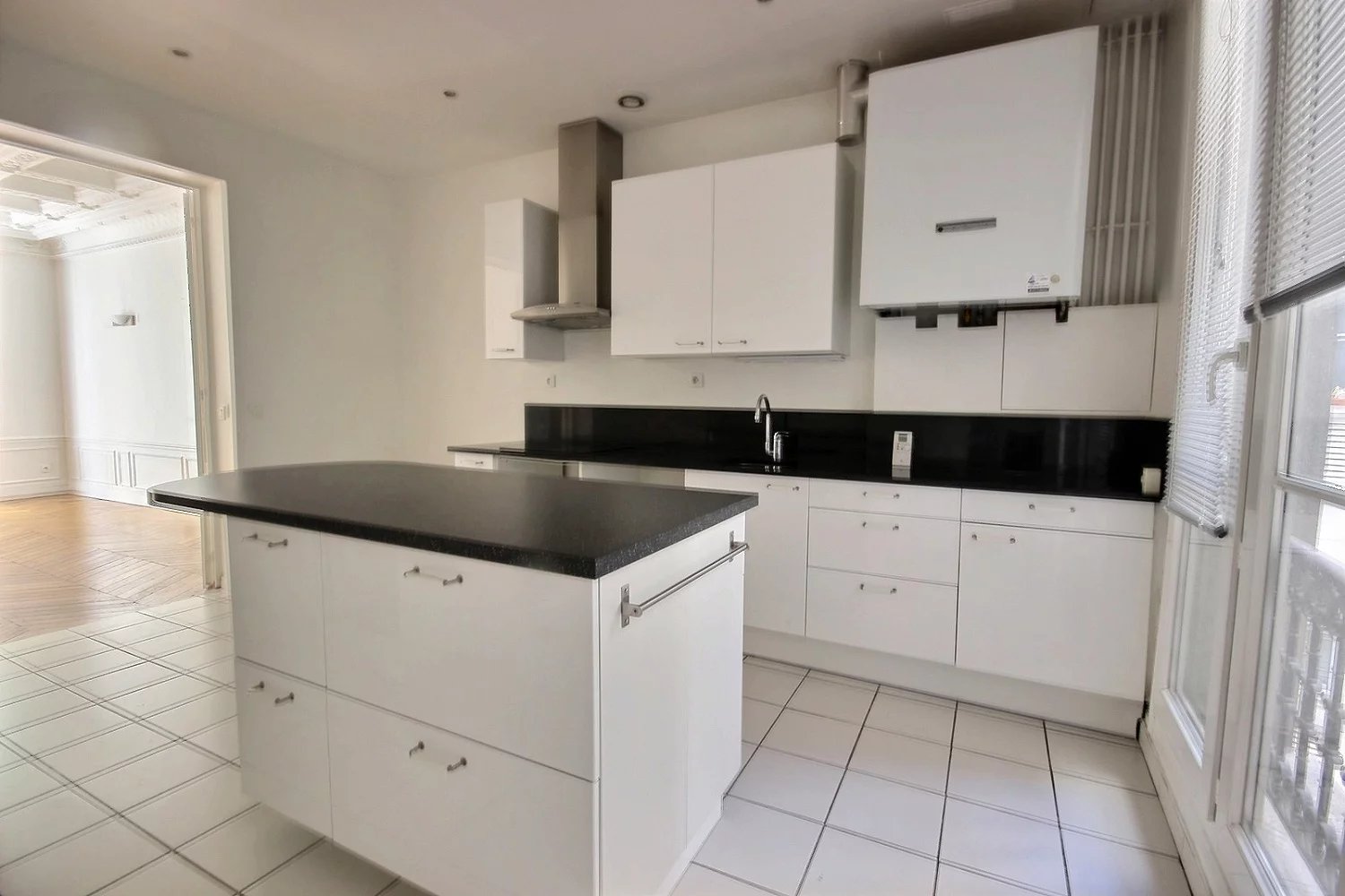 5ème arr. A deux pas de l'île de la Cité, dans bel immeuble pierre de taille, appartement traversant rénové avec prestations de très bon standing, plafond magnifique, exposition sud, balcons