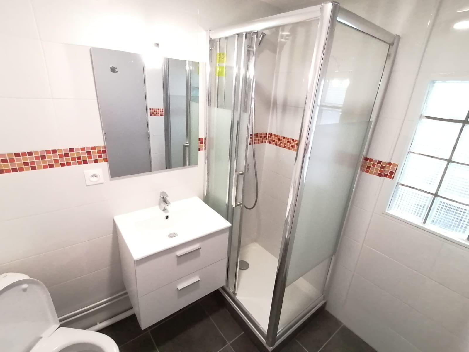 L'appartement se compose d'un séjour avec coin cuisine, d'une chambre disposant d'un placard de rangement, ainsi que d'une salle d'eau avec WC.