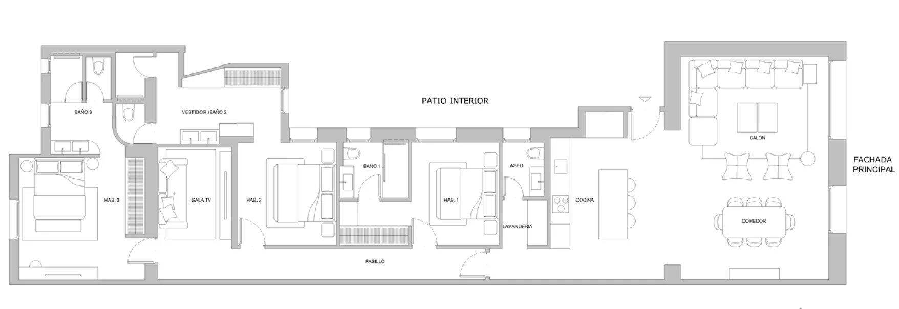 Veraltia presents this elegant apartment in Madrid’s prime Salamanca district, a fully refurbished fifth‑floor home that will be delivered turnkey, furnished and decorated with sophisticated style and top‑quality materials. The social area is conceived as an open‑plan living‑dining room with an integrated kitchen fitted with high‑end appliances, perfect for entertaining.
