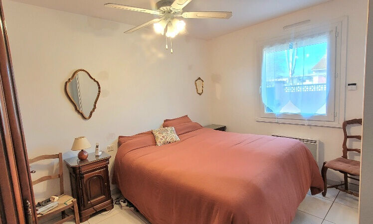 Charmante villa plain pied 4 faces de 93 m² sur terrain de 645 m² comprenant une belle pièce de vie lumineuse de 48 m² avec cuisine équipée et climatisation, 3 chambres (10.17 m² / 12.9 m² / 10 m²), une grande salle d'eau avec douche italienne et deux toilettes.