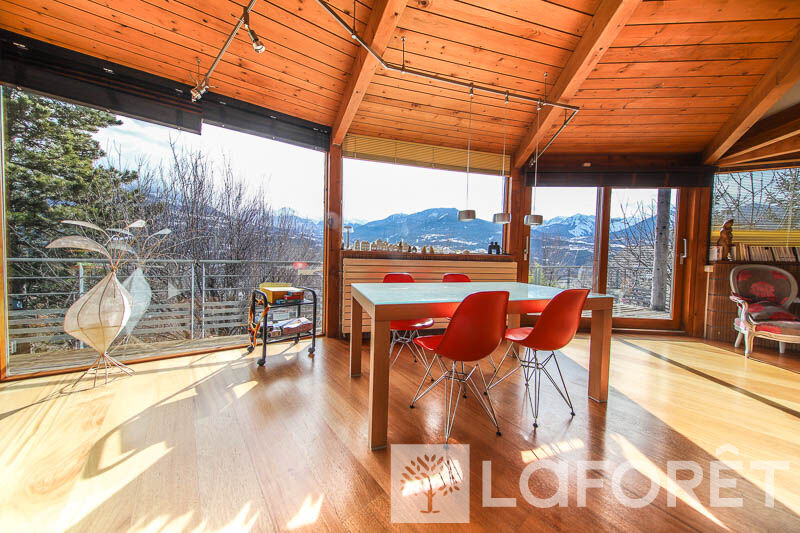 L'agence Laforêt immobilier d'Embrun vous propose à la vente une maison sur une parcelle de 1100 m² env située proche du centre ville bénéficiant d'une vue imprenable sur les montagnes, d'une triple exposition est-sud-ouest et au calme absolue...Elle comprend : un vaste salon/salle à manger, cuisine ouverte équipée, cellier, 3 chambres, terrasse, salle de bains/douche, 2 wc, grand sous-sol