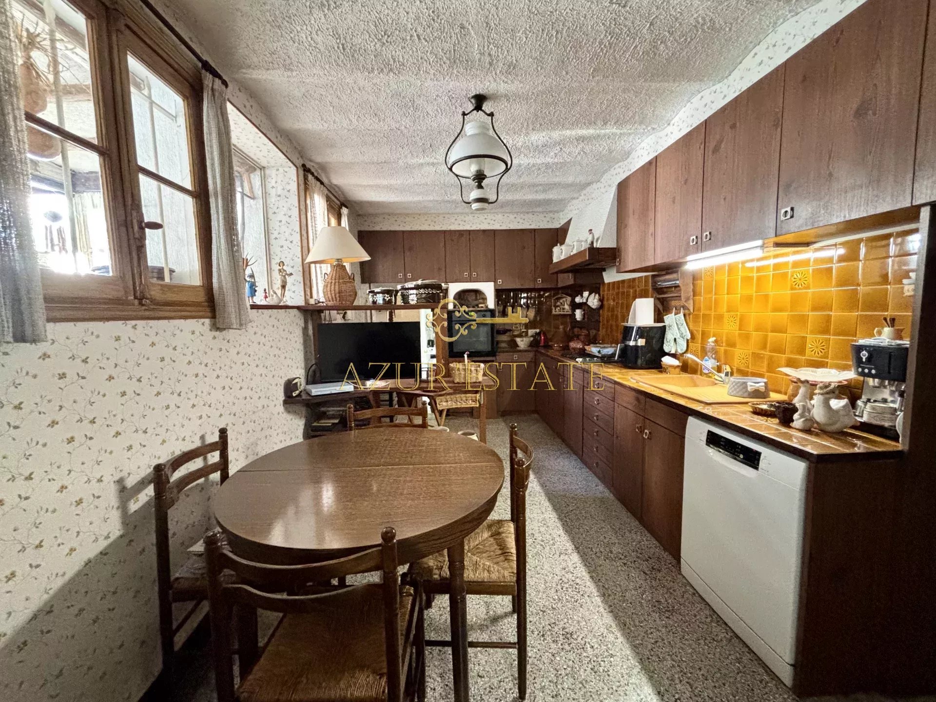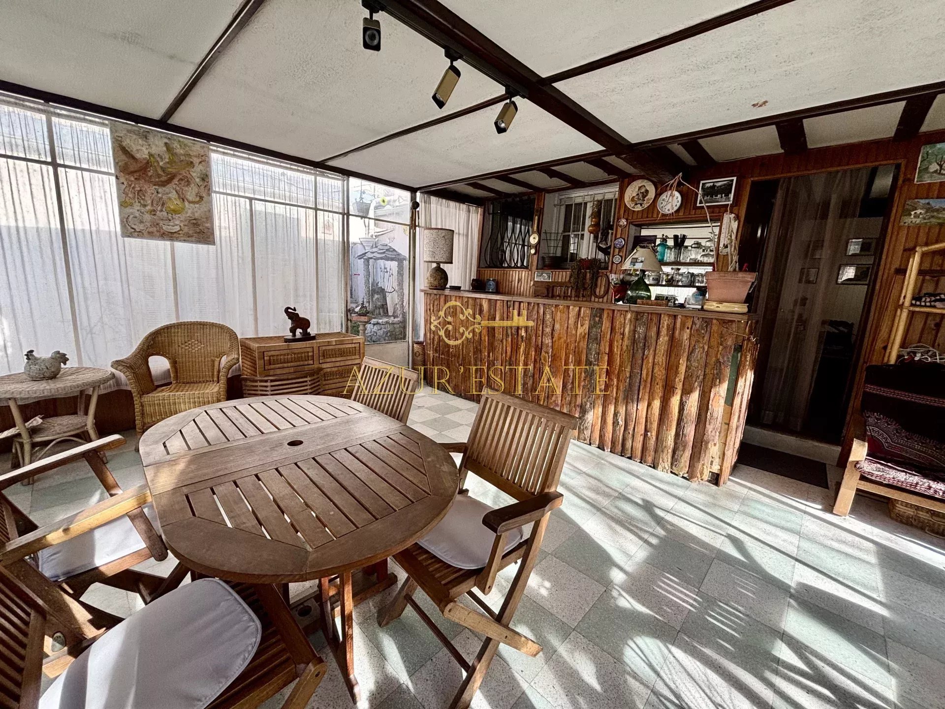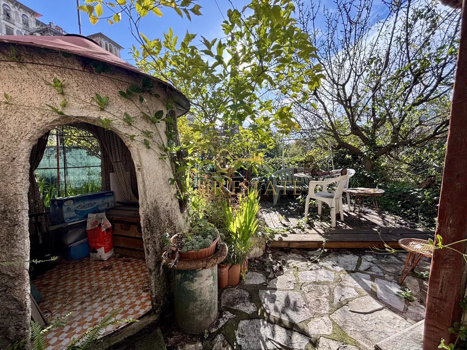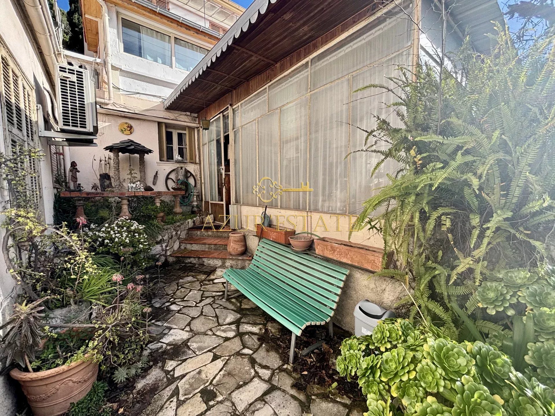 Situé à 5 minutes du quartier de Carnolès, appartement 4 pièces d’environ 101 m² à rafraichir, avec jardin privatif arboré à aménager et petite coursive à l’entrée pouvant être transformée en stationnement pour une voiture. Le bien se compose d’une véranda servant actuellement de salle à manger/bar, d’une entrée desservant deux chambres en enfilade chacune avec sa salle d’eau dont une avec WC, un WC indépendant, une cuisine séparée et un salon avec cheminée fonctionnelle. Le salon donne accès à un grand studio entièrement rénové comprenant une cuisine, une pièce de vie avec grand placard, une salle d’eau et un cellier. Pompe à chaleur récente. Beau potentiel, idéal résidence principale, projet familial.