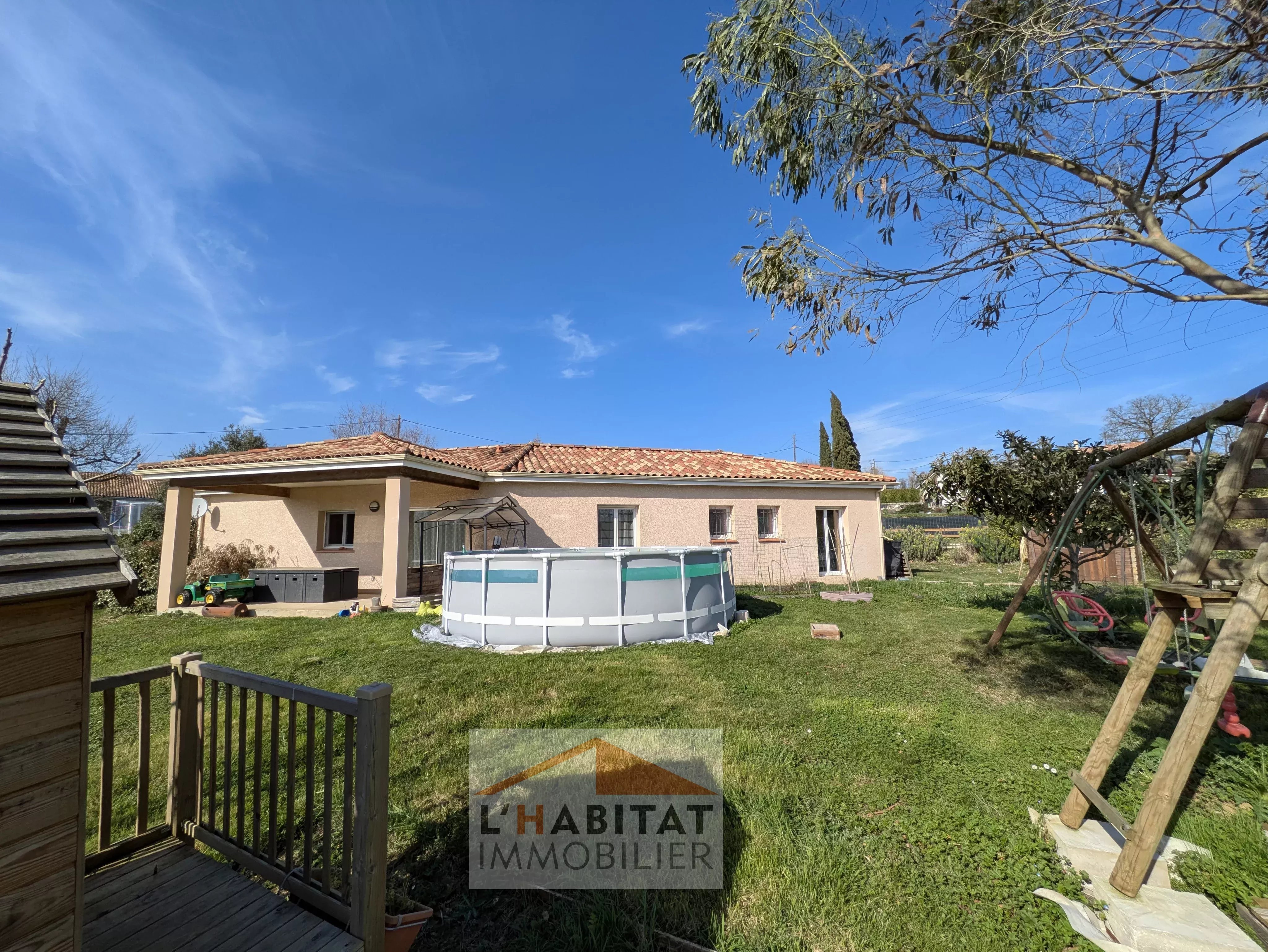 Exclusivité A 8 minutes de L'ISLE-JOURDAIN. Villa récente T5 plain-pied de 113 m² m2 habitables composée d’une entrée avec placard ouvrant sur une spacieuse et lumineuse pièce de vie avec cuisine aménagée et équipée. Côté nuit : 3 chambres avec placard aménagé dont une suite parentale avec sa salle d’eau. Un bureau pouvant aussi servir de chambre d’enfant ainsi qu’une salle de bains indépendante. Le bien dispose d'un cellier / buanderie et d’un garage avec une borne de rechargement pour véhicule électrique. Une terrasse couverte sans vis-à-vis donnant sur le jardin et la piscine hors sol. Terrain arboré de 1 222 m2. Les plus : chauffage par le sol en aérothermie ainsi qu'une climatisation réversible en gainable pour un confort optimal. Situé dans une impasse, pour un calme absolu avec un environnement agréable et champêtre. LHABITAT IMMOBILIER - Nicolas GOUZE 06 99 81 32 48 - négociateur en immobilier.