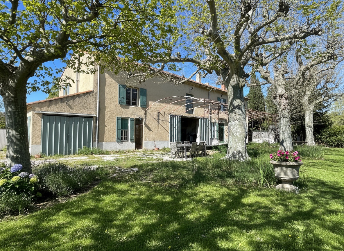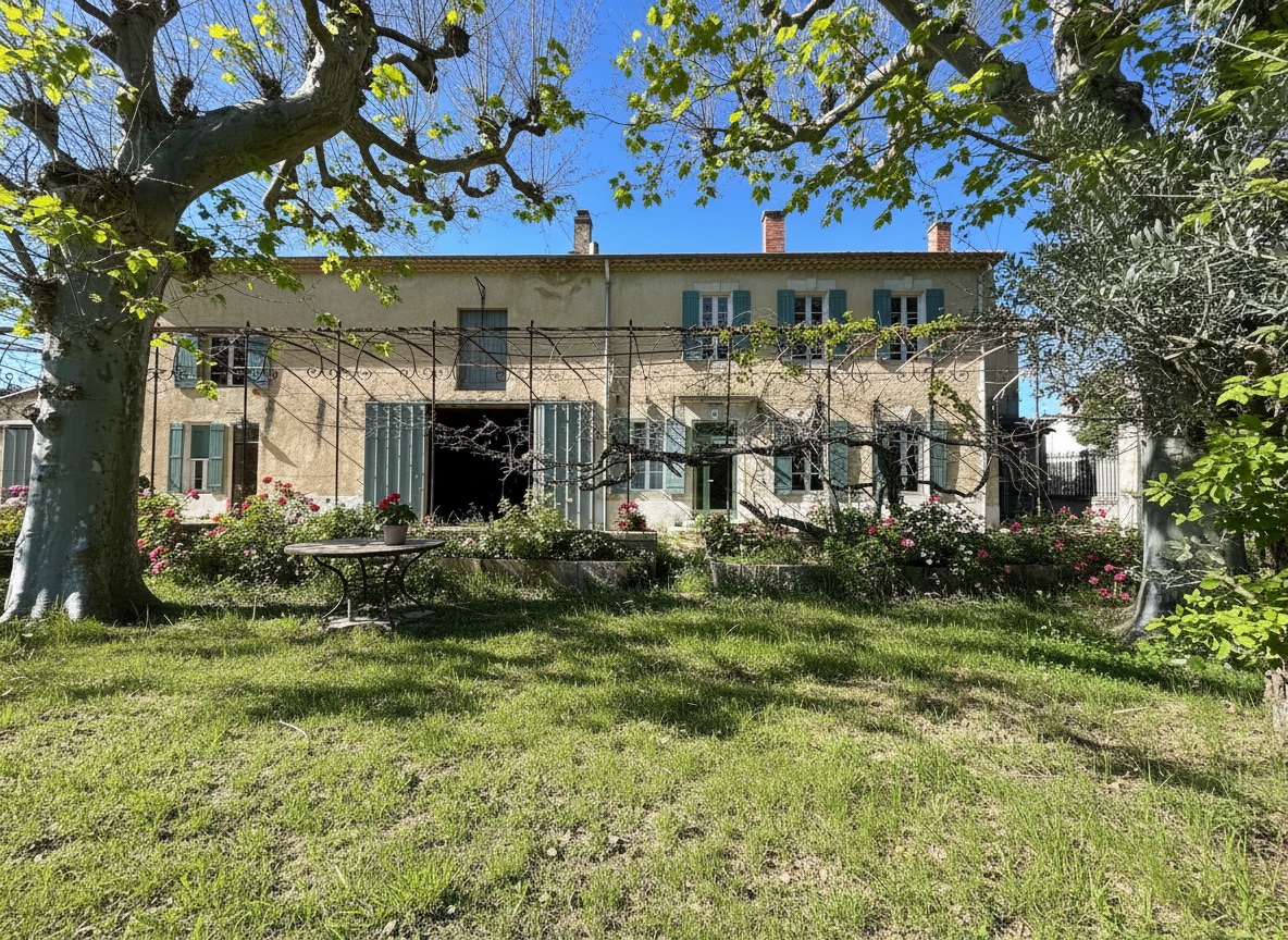 Maison de maitre en campagne, habitable immédiatement ! Cette maison familial au style bastide, déjà habitable sur la plus grande partie, séduit par ses volumes généreux et son authenticité. Actuellement organisé en deux habitations distinctes, Elle peut facilement être réuni en une seule grande demeure pleine de charme. Vous y trouverez pas moins de 8 chambres, une remise de 70 m² sur deux niveaux, un garage de 47 m² ainsi que de vastes dépendances encore aménageables selon vos envies. Son terrain plat de 17 000 m², orné de trois superbes platanes, offre un cadre idéal pour accueillir chevaux, oliviers ou autres projets paysagers. Exposé plein sud, cette habitation lumineuse bénéficie d'un environnement paisible tout en étant situé à seulement 2 minutes du centre-ville et à moins de 5 minutes de l'autoroute, 20 Minutes de la gare TGV Lien vidéo disponible