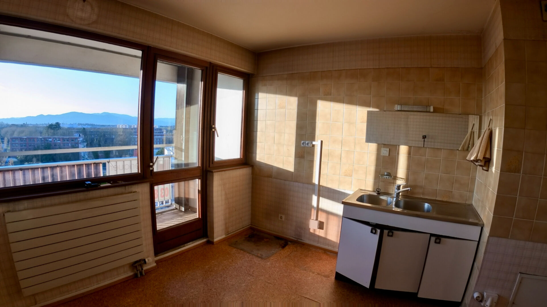 A VENDRE : Mulhouse - Pierrefontaine Nous vous proposons cet appartement F4 de 85m2, situé au dernier étage avec ascenseur à niveau. Il se compose d'une entrée desservant une cuisine indépendante et sa loggia, avec vue sur Vosges; un séjour double d'une surface de 33m2 avec également son accès extérieur (vue sur parc) . 2 chambres de 10 et 12m2. Possibilité de créer une troisième chambre dans le séjour. Une salle de bains avec baignoire, lavabo. W.C. séparé. Et un cellier fermé. Très belle vue sur Vosges, luminosité tout au long de la journée ! Grand parc privatif avec un terrain de tennis! L'appartement est vendu avec une cave et un garage simple. !! Possibilité d'acquérir un garage double supplémentaire !! Afin de lui redonner vie, cet appartement nécessite des travaux de rénovation. A savoir fenêtres, électricité, sanitaires, décoration. A VISITER Copropriété de 112 lots - dont 50 lots habitation. Charges annuelles : 4440 euros.