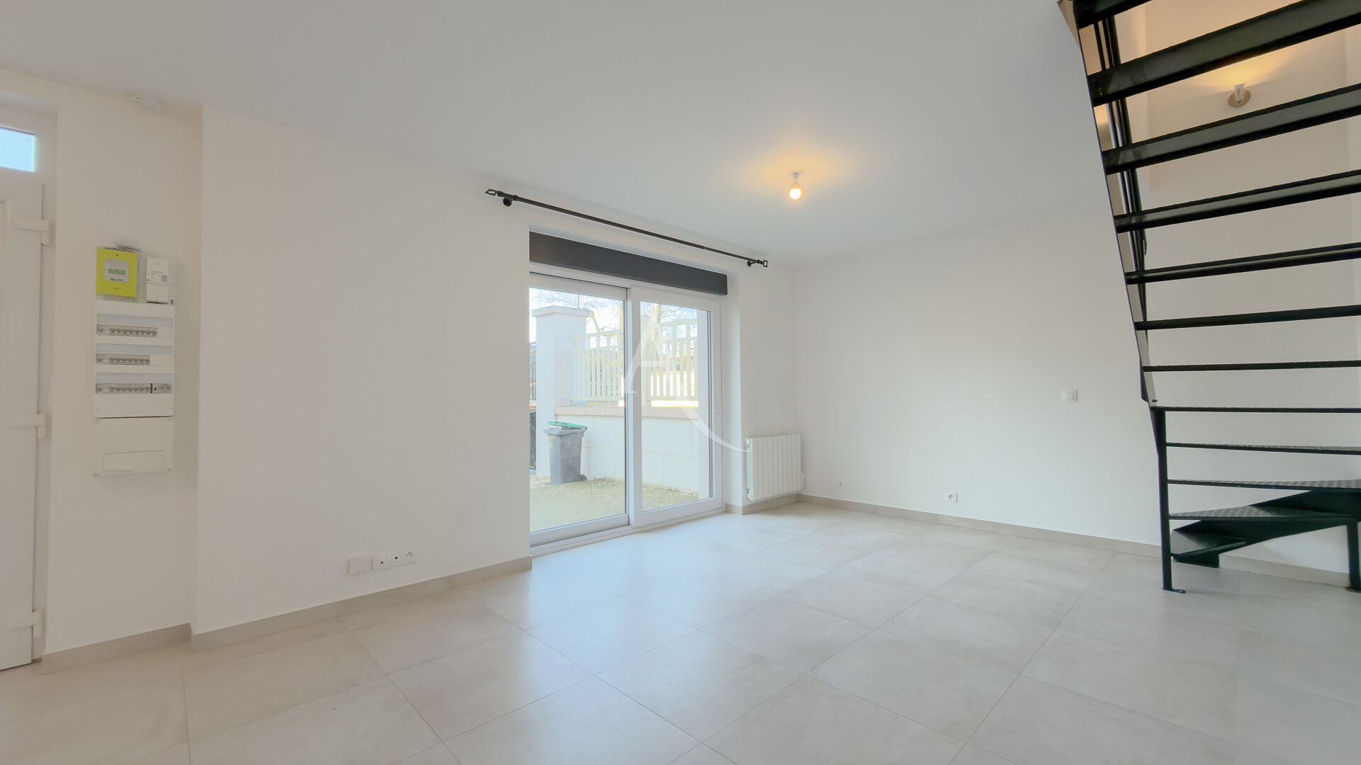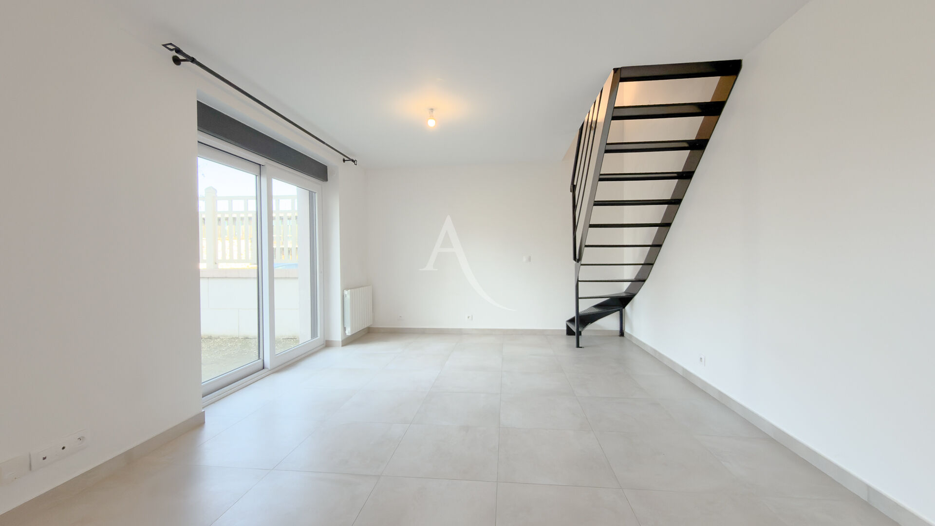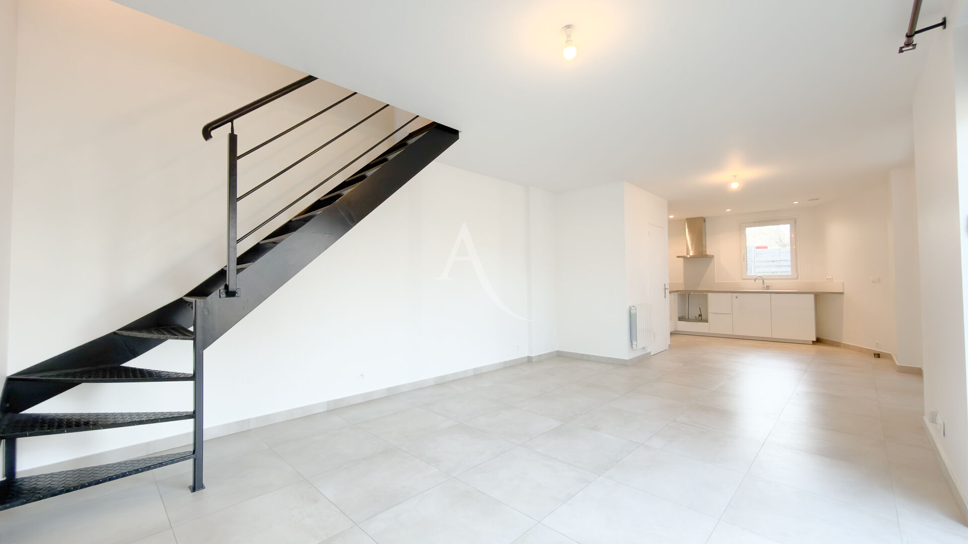 Maison de type F3 avec un étage : Entrée sur séjour carrelé avec cuisine américaine aménagée, WC. A l'étage : Deux chambres, salle d'eau. Une terrasse et la jouissance d'un petit jardin. Chauffage individuel électrique. Pas de parking privé mais possibilités de stationnement à proximité immédiate de la maison. Disponible immédiatement.