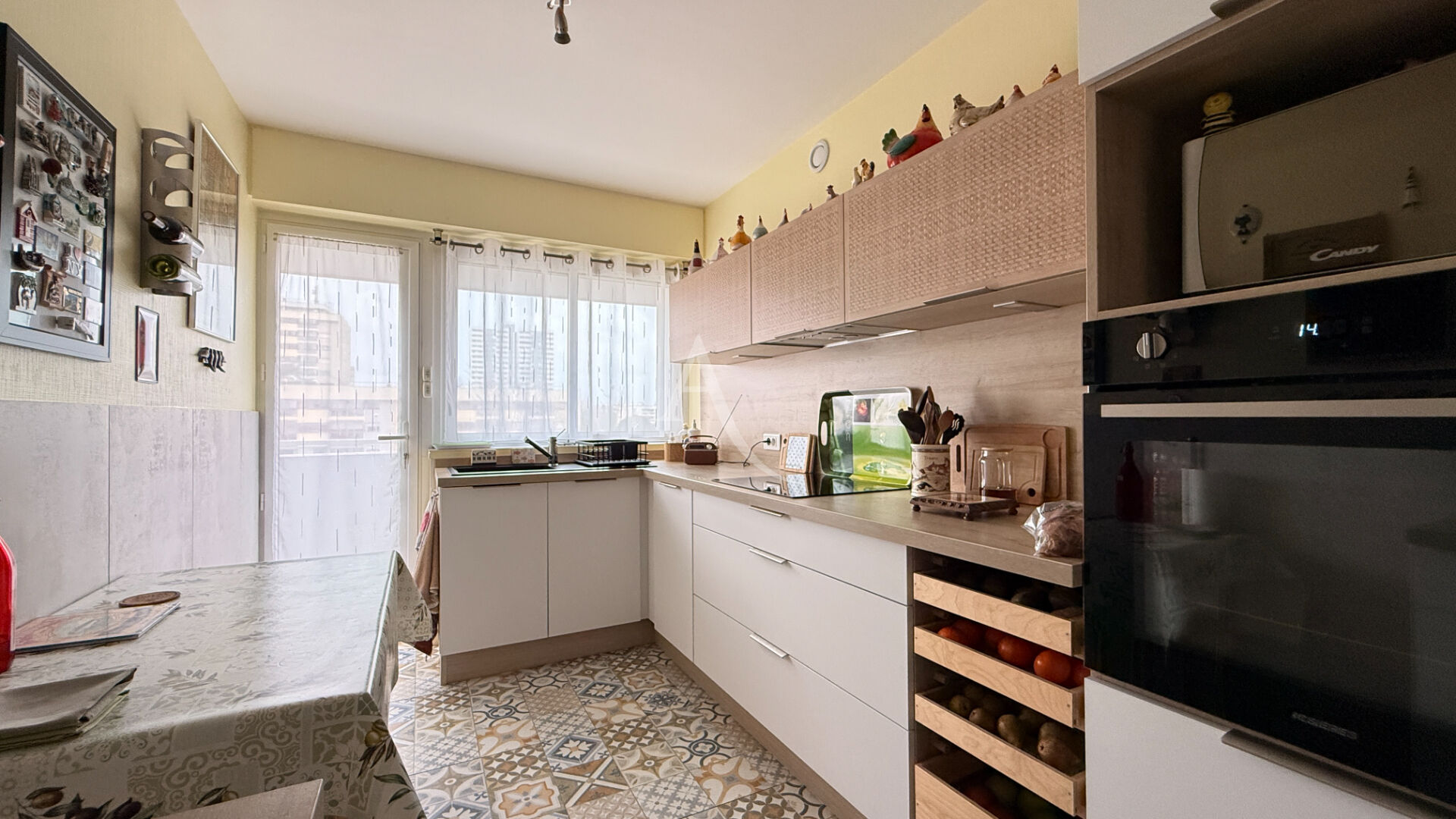 Appartement 3 pièces, 80 m², Résidence sécurisée avec ascenseur, Idéalement situé à proximité immédiate de toutes les commodités (commerces, transports, écoles, services), découvrez cet appartement de 80 m² entièrement rénové, niché au 3, étage avec ascenseur d'une résidence sécurisée, parfaitement entretenue. Dès l'entrée, vous serez séduit par une belle pièce de vie lumineuse comprenant un salon convivial, un espace séjour et un coin salle à manger harmonieusement agencés donnant sur un balcon. La cuisine, aménagée et entièrement équipée, offre un cadre fonctionnel et moderne. L'espace nuit, bien distinct, se compose de deux chambres confortables, d'une salle d'eau et de WC indépendants. Cet appartement comprend également un cellier, une cave ainsi qu'une place de parking privative. DPE: E PRIX: 172 500 euros REF: 9801 Copropriété de 64 lots - dont 32 lots habitation. (Pas de procédure en cours). Charges annuelles : 3204 euros.