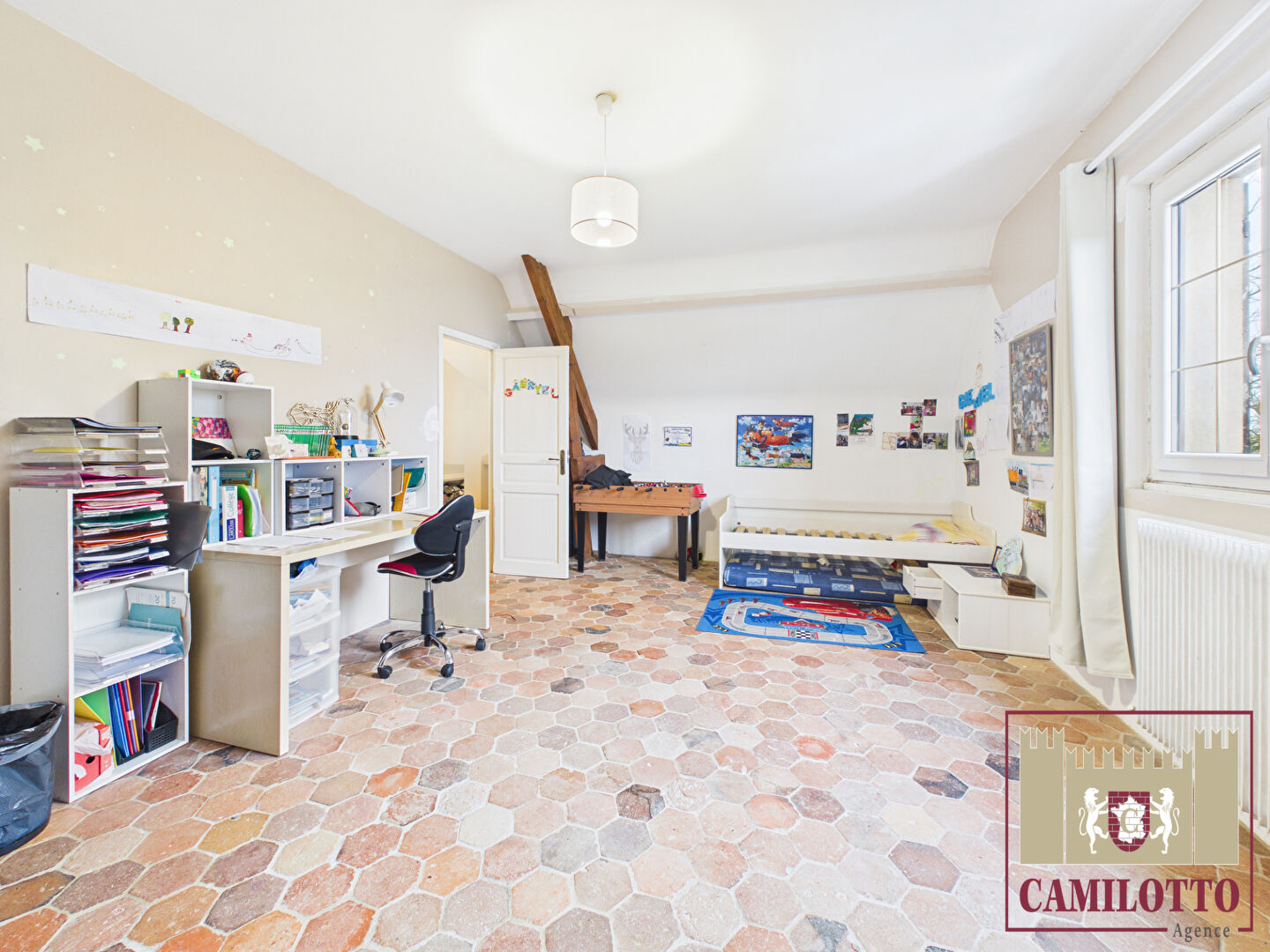 L'Agence Camilotto vous présente : A seulement 5 minutes de Nogent-le-Roi, dans un environnement privilégié alliant calme et praticité, découvrez cette superbe maison traditionnelle nichée sur un magnifique terrain arboré de plus de 8 000 m² avec tennis. Les commerces et écoles sont accessibles sur place, et la gare SNCF reliant Paris-Montparnasse en 50 minutes se situe à seulement 15 minutes, un emplacement idéal pour concilier vie au vert et vie active. Dès l'entrée, la maison séduit par ses beaux volumes et son atmosphère chaleureuse. Le rez-de-chaussée propose un double séjour lumineux, sublimé par une cheminée de caractère avec un poêle à bois parfait pour des moments conviviaux en famille ou entre amis. La cuisine, fonctionnelle et agréable, complète cet espace de vie. Ce niveau offre également quatre chambres, dont deux véritables suites avec salle de bains privative et une chambre avec salle d'eau, garantissant confort et intimité à chacun. A l'étage, une pièce palière dessert deux chambres supplémentaires, chacune disposant de sa propre salle de bains, ainsi qu'un WC. Un grenier vient parfaire l'ensemble et offre un potentiel d'aménagement complémentaire. La maison bénéficie d'un sous-sol total, comprenant garage, atelier et chaufferie, apportant de nombreuses possibilités de rangement et d'organisation. A l'extérieur, le vaste terrain paysagé invite à la détente et aux loisirs, avec un terrain de tennis privé, idéal pour profiter pleinement des beaux jours dans un cadre verdoyant et préservé. Une propriété rare sur le secteur, idéale pour une grande famille ou une résidence secondaire de standing, alliant espace, confort et qualité de vie. DPE : D GES : D - Visite virtuelle disponible sur demande ! - N'attendez plus ! contactez-nous pour découvrir ce bien d'exception : 02.37.51.11.75 (5.00 % honoraires TTC à la charge de l'acquéreur.)