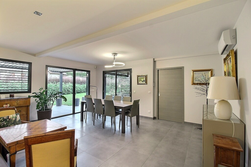 Situé sur la commune de Publier, dans un environnement d'exception, au coeur du prestigieux golf d'Evian, cette villa contemporaine édifiée en 2013 se distingue par la qualité de son entretien, ses finitions et son mobilier raffiné. Implantée sur un terrain clos et paysager de 1000 m², elle offre un cadre de vie rare, où sérénité, nature et confort moderne se conjuguent harmonieusement. Proche du centre d'Evian et des rives du lac Léman, cette adresse privilégiée séduit par son atmosphère exclusive et son emplacement unique. Cette maison d'une surface de 177m² sur deux niveaux vous offre au rdc : une grande entrée, une belle cuisine entièrement aménagée et équipée, un espace de vie agréable et lumineux offrant une atmosphère chaleureuse et accueillante, un grand cellier, une buanderie, une chambre parentale avec un dressing sur mesure , une salle d'eau, un wc séparé. A l'étage : 3 chambres, une salle de bains spacieuse avec douche et baignoire, un wc séparé. Sa belle terrasse en prolongement du séjour constitue un véritable atout, idéal pour profiter des beaux jours et recevoir en toute convivialité. Vous bénéficierez également d'un système de chauffage performant, avec l'installation d'une pompe à chaleur et d'un poêle à bois permettant ainsi une économie notable d'énergie. Et pour parfaire cet ensemble, la villa dispose d'un double garage attenant alliant praticité et confort ainsi qu'une cour intérieur pour deux voitures. Cette maison ne manquera pas de vous séduire.