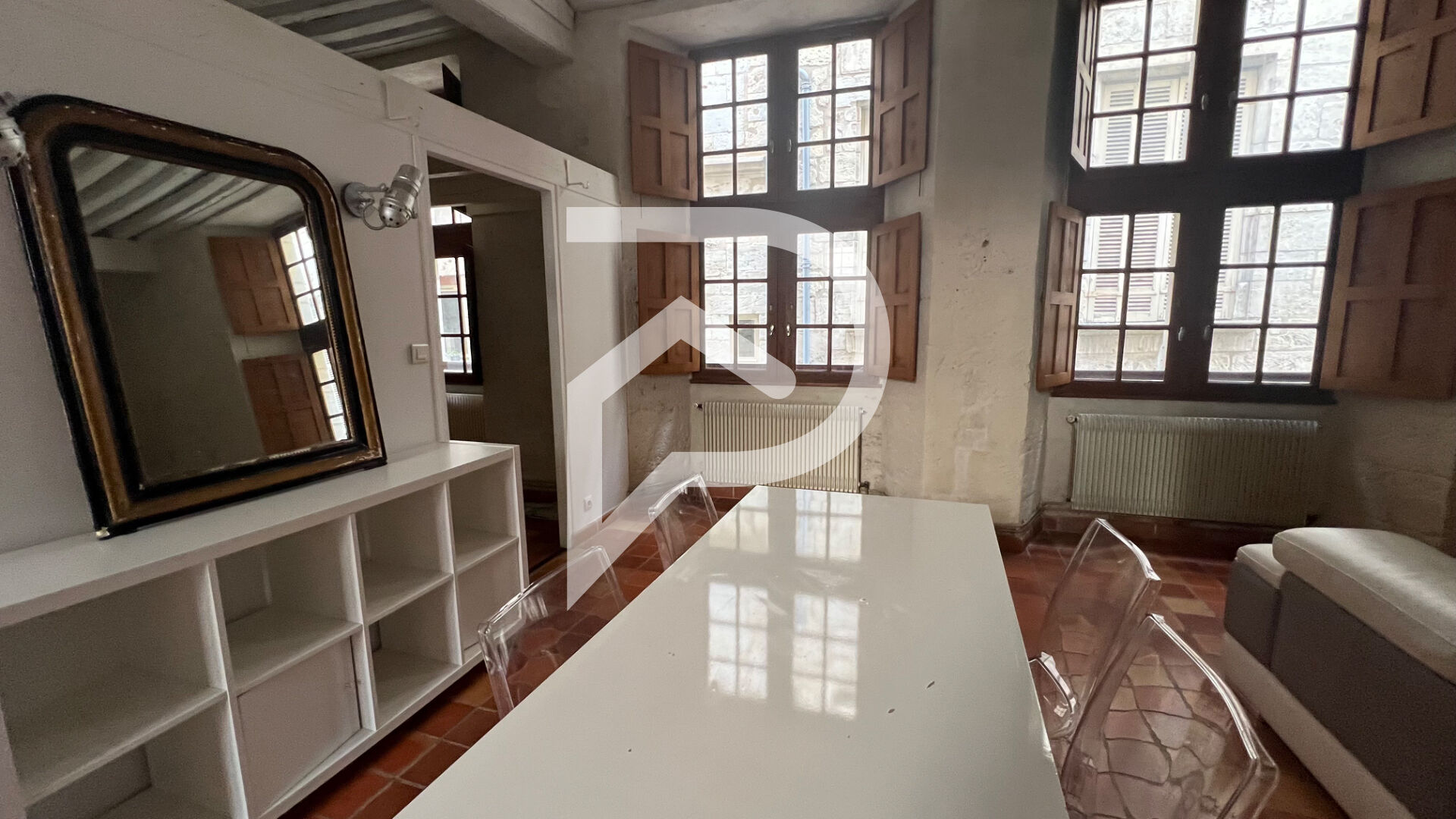 Grand T2 meublé au coeur du centre-historique de Périgueux, entrée, spacieux séjour, cuisine séparée, 1 chambre avec placards de rangement, salle de bains, et wc séparés. DISPONIBILITÉ IMMÉDIATE.
