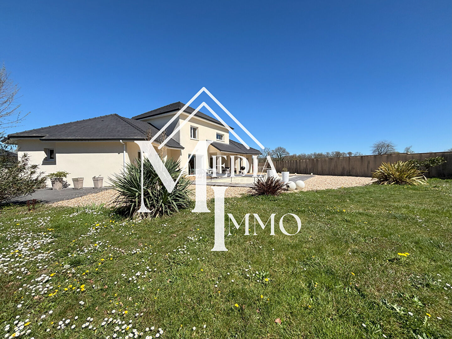 Maison 6 pièces à 5 minutes de Pau Idéalement située à seulement 5 minutes au nord de Pau, sur lune commune prisée, cette magnifique maison de type T6, construite en 2006, vous offrira un cadre de vie exceptionnel alliant confort, calme et verdure. Dès l'entrée, vous serez séduit par un vaste salon-séjour lumineux, parfait pour des moments conviviaux en famille ou entre amis. La cuisine séparée, aménagée et entièrement équipée, vous permettra de concocter de bons repas dans un cadre agréable. Le rez-de-chaussée comprend également une buanderie pratique, un bureau qui peut facilement se transformer en chambre d'appoint, ainsi qu'une superbe suite parentale avec son dressing et une salle d'eau privative pour plus d'intimité. A l'étage, l'espace nuit se compose de trois chambres spacieuses, toutes baignées de lumière, ainsi qu'une salle de bains moderne, idéale pour la famille. L'extérieur est un véritable atout : un terrain clos et arboré de 2 000 m² crée un environnement paisible et intime. Vous pourrez profiter pleinement des journées ensoleillées grâce à une belle piscine, un lieu parfait pour se détendre en toute tranquillité. Un grand garage attenant, directement communicant avec l'habitation, offre un espace de rangement supplémentaire et de nombreuses possibilités d'aménagement. Cette maison, très bien construite et particulièrement confortable, ne nécessite aucun travaux et est prête à vous accueillir. Située dans un quartier calme et recherché, elle constitue une opportunité rare aux portes de Pau, alliant le charme de la campagne et la proximité de la ville. A visiter sans tarder ! Une visite? Plus d'informations? Contactez-nous en précisant la référence mandat 4333. MEDIA IMMO PAU et ARTIX.