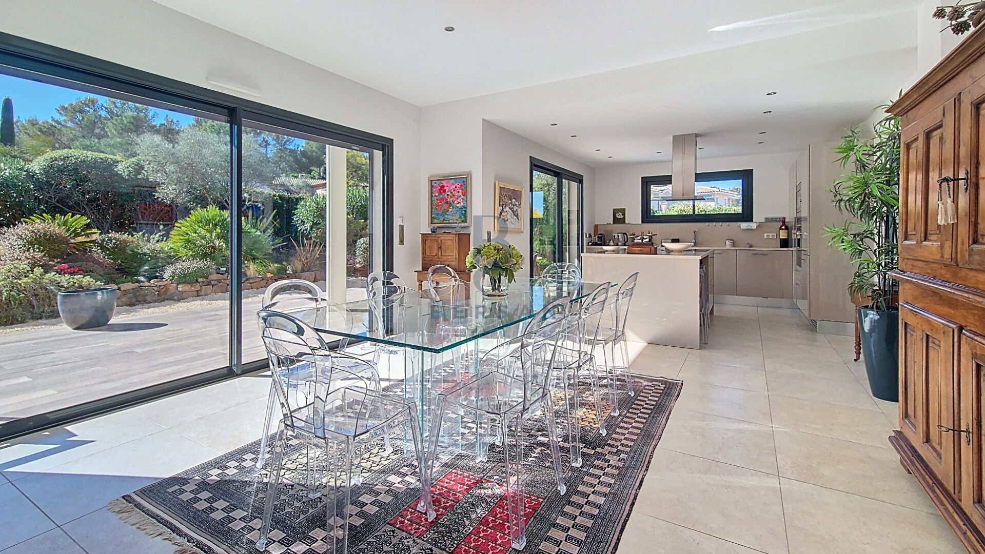 BERSAN Immobilier vous propose cette magnifique villa contemporaine située dans un domaine fermé et recherché, à proximité immédiate des golfs et à pied des commerces Implantée dans un environnement résidentiel d'exception, cette propriété bénéficie d'une position dominante, d'une vue dégagée sans vis-à-vis et d'un cadre de vie privilégié entre nature et élégance. Pour tout complément ou pour organiser une visite, contactez votre agence BERSAN Immobilier, spécialiste du secteur de Valescure ? Saint-Raphaël. Dès l'entrée, vous découvrez un vaste espace de réception traversant, baigné de lumière grâce à de larges baies vitrées, prolongé par une cuisine ouverte moderne parfaitement aménagée et une arrière-cuisine avec accès direct au garage Les volumes sont maîtrisés, les circulations fluides et l'ensemble s'ouvre harmonieusement sur l'extérieur et les terrasses Le rez-de-chaussée accueille également une spacieuse suite parentale avec dressing, salle d'eau et toilettes, ainsi qu'un bureau. A l'étage, un palier confortable dessert trois chambres avec rangements, une salle de bains et une agréable pièce de type véranda offrant un espace détente. Le terrain paysager soigneusement aménagé propose une piscine chauffée, un espace convivial pour recevoir, un espace d'entraînement pour les amateurs de golf Un garage spacieux, de nombreux rangements et des stationnements complètent l'ensemble Une villa en parfait état, prête à accueillir ses nouveaux propriétaires, pensée pour un art de vivre confortable et raffiné dans l'un des secteurs les plus recherchés de Valescure. Pour tout complément ou pour organiser une visite, contactez votre agence BERSAN Immobilier, spécialiste du secteur de Valescure ? Saint-Raphaël