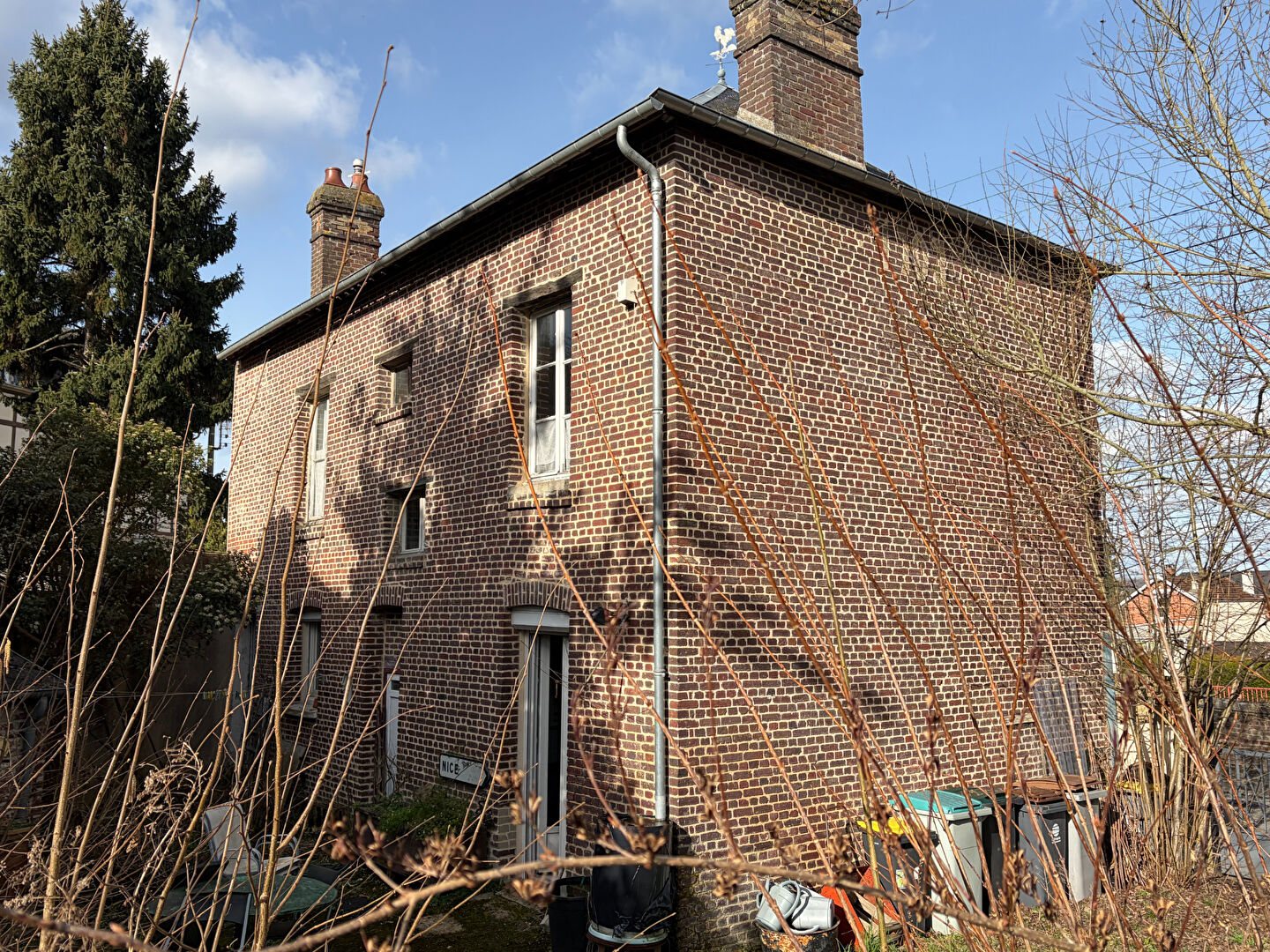 Sur les hauteurs d'Elbeuf, à quelques minutes à pied des commerces et écoles, sur un terrain de 821 m², maison ancienne en briques à rénover, environ 95 m² habitables + grenier aménageable, comprenant : - au rez-de-chaussée : entrée, cuisine aménagée de 9 m², coin-repas de 10 m², séjour de 20 m² avec cheminée, chaufferie avec wc. - au 1er étage : palier, 2 chambres double avec bureau, salle-de-bains avec wc. - au dessus : grenier aménageable (poss. 2 chambres). Chauffage central au gaz de ville. Fenêtres PVC avec volets roulants électriques au rdc et simple vitrage bois à l'étage. Prévoir travaux.