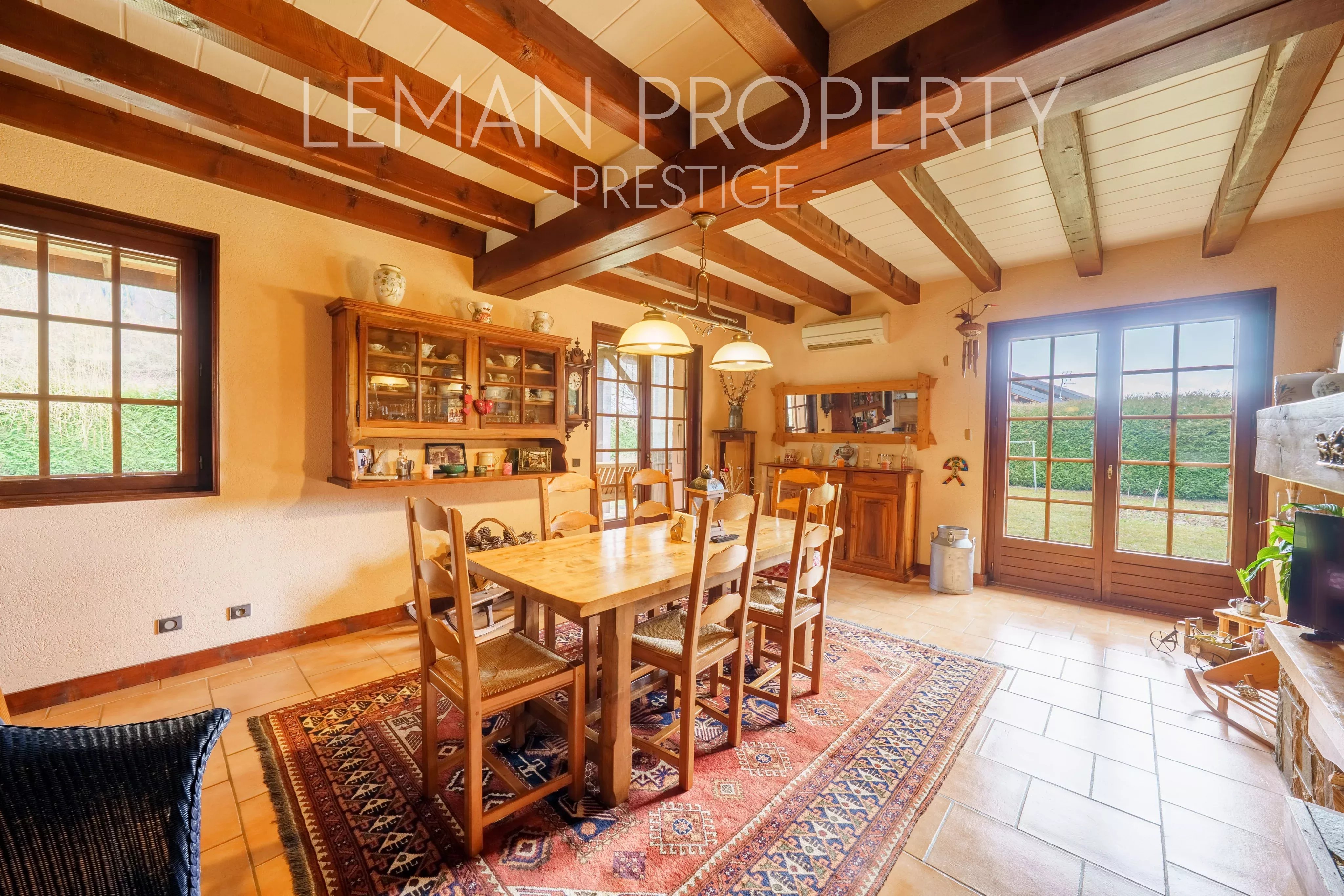 Venez découvrir cette charmante maison familiale située dans un environnement calme et verdoyant sur la commune d’Orcier, celle-ci bénéficie de la triple exposition et d’une vue dégagée sur les montagnes, offrant un cadre de vie paisible et privilégié. Implantée sur un terrain plat et arboré de 2 082 m², cette propriété propose un vaste espace extérieur permettant de nombreux aménagements, notamment l’implantation d’une piscine pour profiter pleinement des beaux jours dans un environnement naturel d’exception. La maison séduit par son atmosphère chaleureuse et authentique : boiseries, cheminée, poutres apparentes, autant d’éléments qui lui confèrent un véritable charme montagnard. Au rez : agréable pièce de vie lumineuse et conviviale avec accès à une terrasse bien orientée, grande cuisine meublée, idéale pour les moments de partage, deux chambres au rez-de-chaussée, salle de bains, WC séparés. À l’étage : une pièce palière pouvant accueillir une salle de jeux, un espace détente, un bureau ou une suite parentale, une grande chambres et une chambre d'amis. Une dépendance complète l’ensemble, idéale pour un bureau, un atelier ou tout autre projet selon vos besoins. Un garage vient également parfaire ce bien. Cette maison dispose d’un fort potentiel et nécessite un rafraîchissement afin de révéler tout son charme et devenir un lieu de vie chaleureux et personnalisé. Atout supplémentaire : possibilité de division parcellaire (emprise au sol de 30 %). Ancien DPE (2013) : E (énergie) C (GES) Nouveau DPE en cours possiblement en D et C. Honoraires à la charge du vendeur. Un bien rare sur le secteur, séduisant par son environnement, sa superficie de terrain et ses possibilités d’évolution. À découvrir sans tarder.