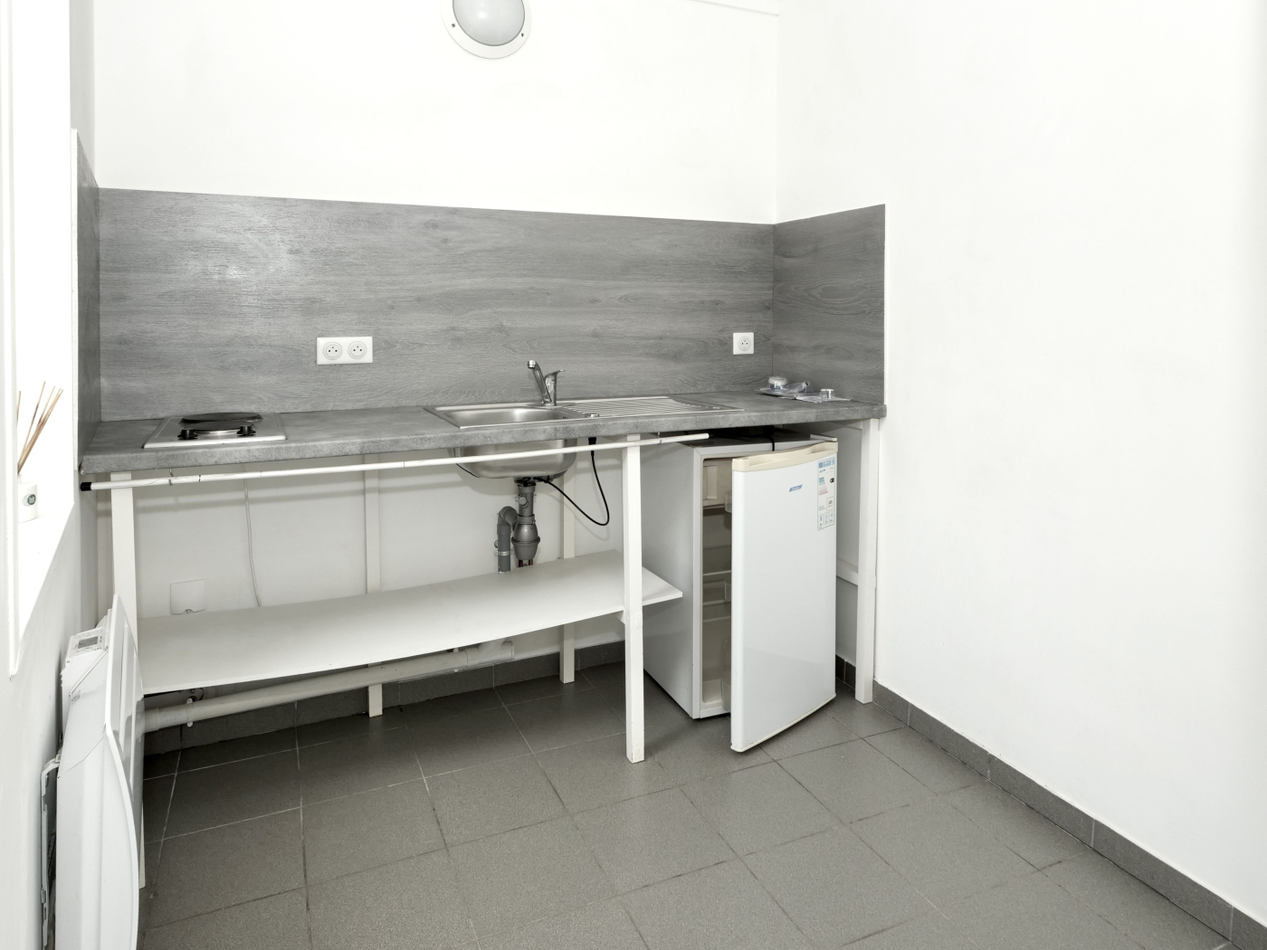 Le bien dispose d'une cuisine séparée et en partie équipée (petit réfrigérateur, plaque électrique 2 feux).