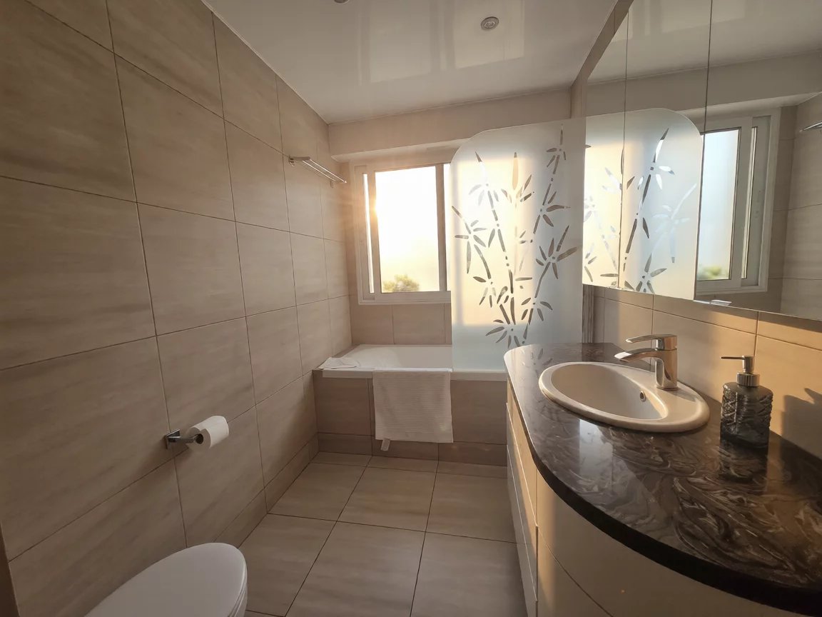 Dans résidence sécurisée et fermée, avec espaces verts et piscine, appartement 2p entièrement climatisé, de 43m2 au 2e étage, offrant, une entrée avec rangements, séjour/cuisine US équipée, une chambre confortable de 13m2, une salle de bains avec WC. Un balcon/Loggia filant, accessible depuis toutes les pièces, prolonge agréablement l’espace de vie, équipé de fenêtres en PVC triple vitrage avec différents systèmes d’ouverture (à la française, en soufflet ou coulissante), offrant un excellent confort thermique et acoustique, ainsi qu’une luminosité optimale et un véritable gain de place.
