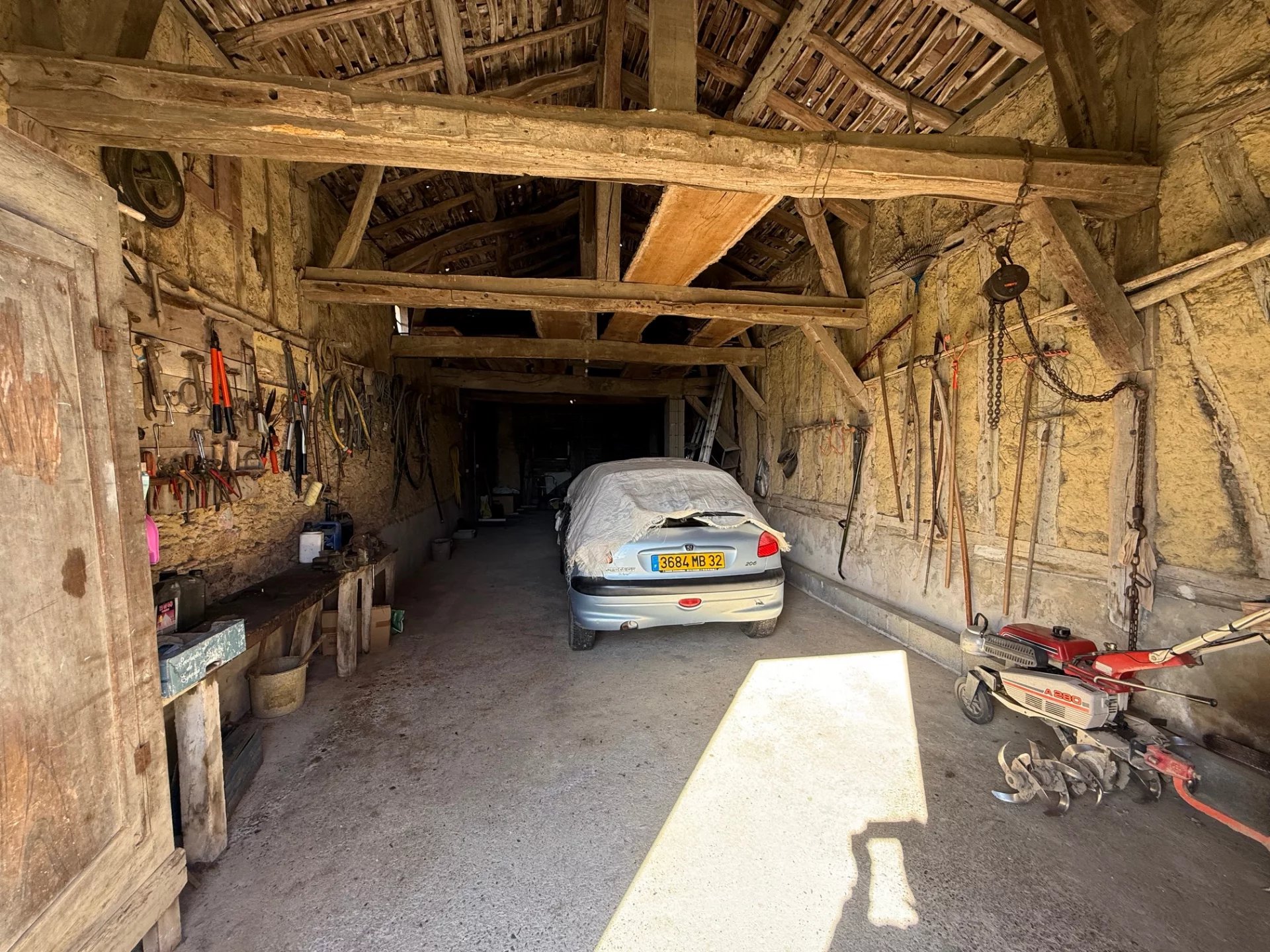La maison se compose d'un salon/salle à manger, cuisine, 3 chambres, une salle d'eau et wc. Un coin patio, et plusieurs dépendances à savoir: des anciennes étables, un chai, et autre.