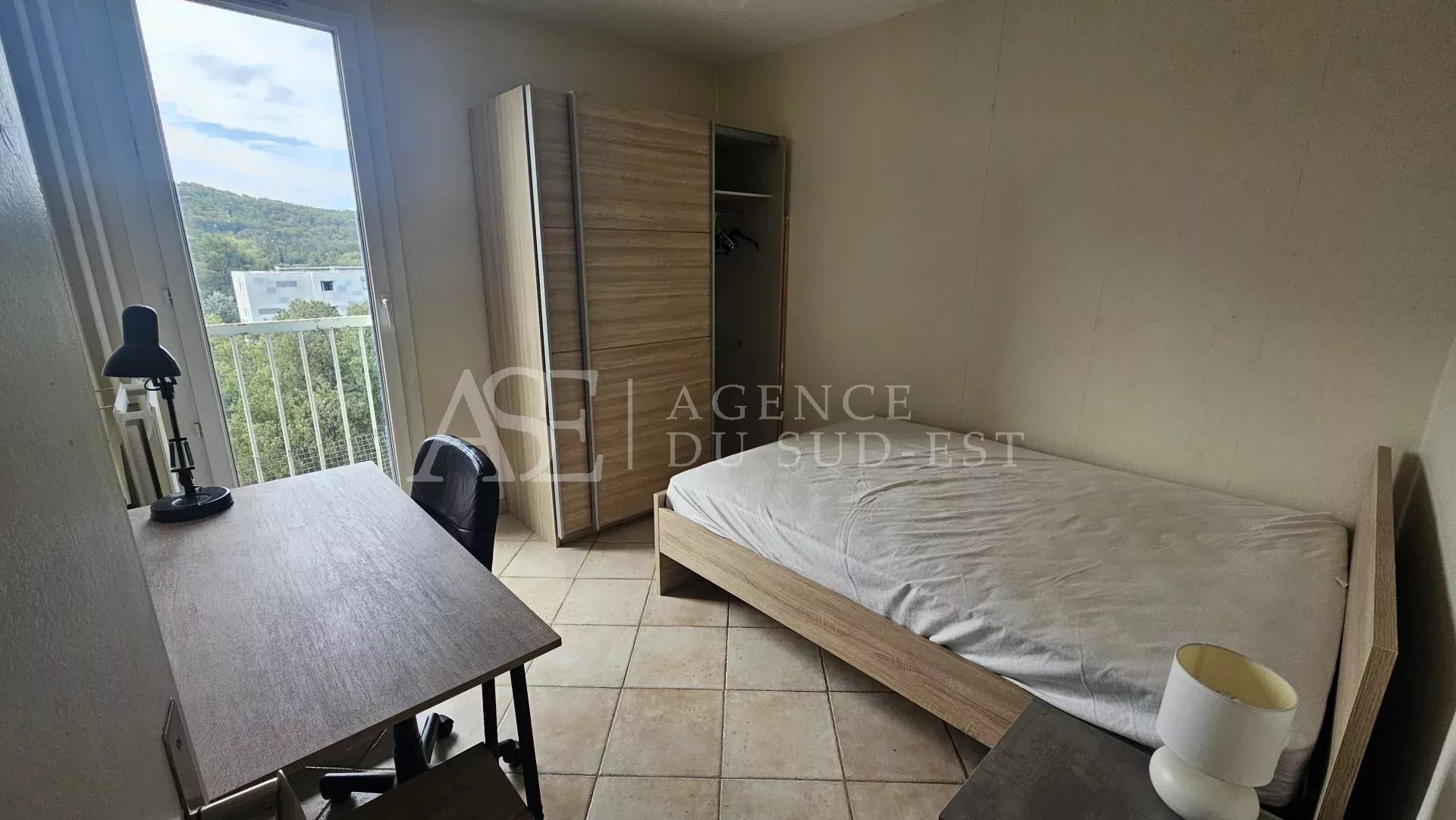 Type 3 meublé au 4ème avec ascenseur, dans résidence avec gardien, proche des facultés. Comprenant : un hall d'entrée avec rangement, une cuisine équipée, un cellier avec machines à laver, un séjour avec terrasse, 2 chambres, une salle de bains, wc.