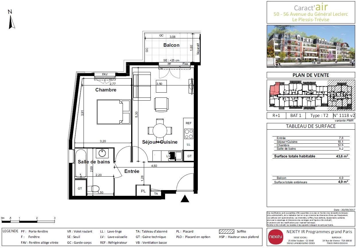 Au Plessis Trevise. RESIDENCE Caract Air. Nous vous proposons un appartement T2 d'une superficie de 43.60m² situé au 1er étage avec ascenseur, comprenant : un séjour de 18.10m² avec coin cuisine aménagé, un balcon de 4.90m², une chambre, une salle de bain avec WC. Au sous-sol, un parking n°43 complète ce bien. Eau chaude et chauffage collectifs au gaz. Eau froide, entretien parties communes, entretien ascenseur et espaces verts communs, compris dans les provisions sur charges mensuelles et donnant lieu à une régularisation annuelle.