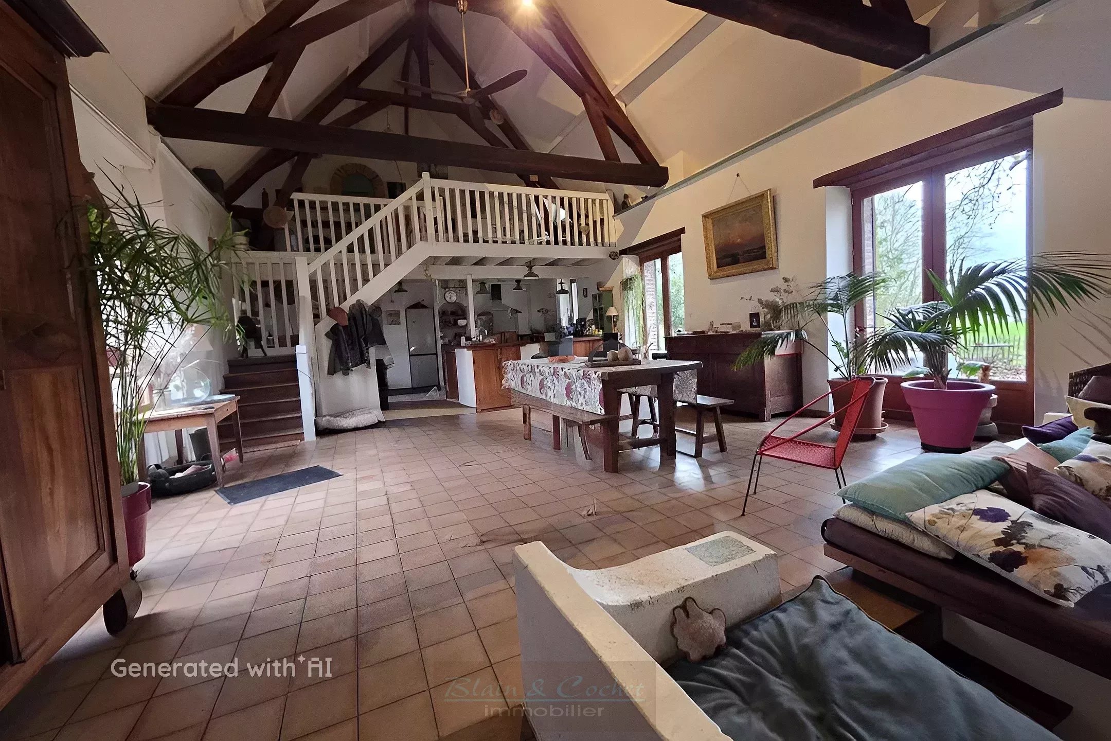 La bâtisse principale développe plus de 320 m² habitables et peut être exploitée comme une vaste maison familiale ou organisée en habitation principale avec gîte attenant comprenant un séjour avec cuisine, deux chambres, une salle d’eau et des toilettes.