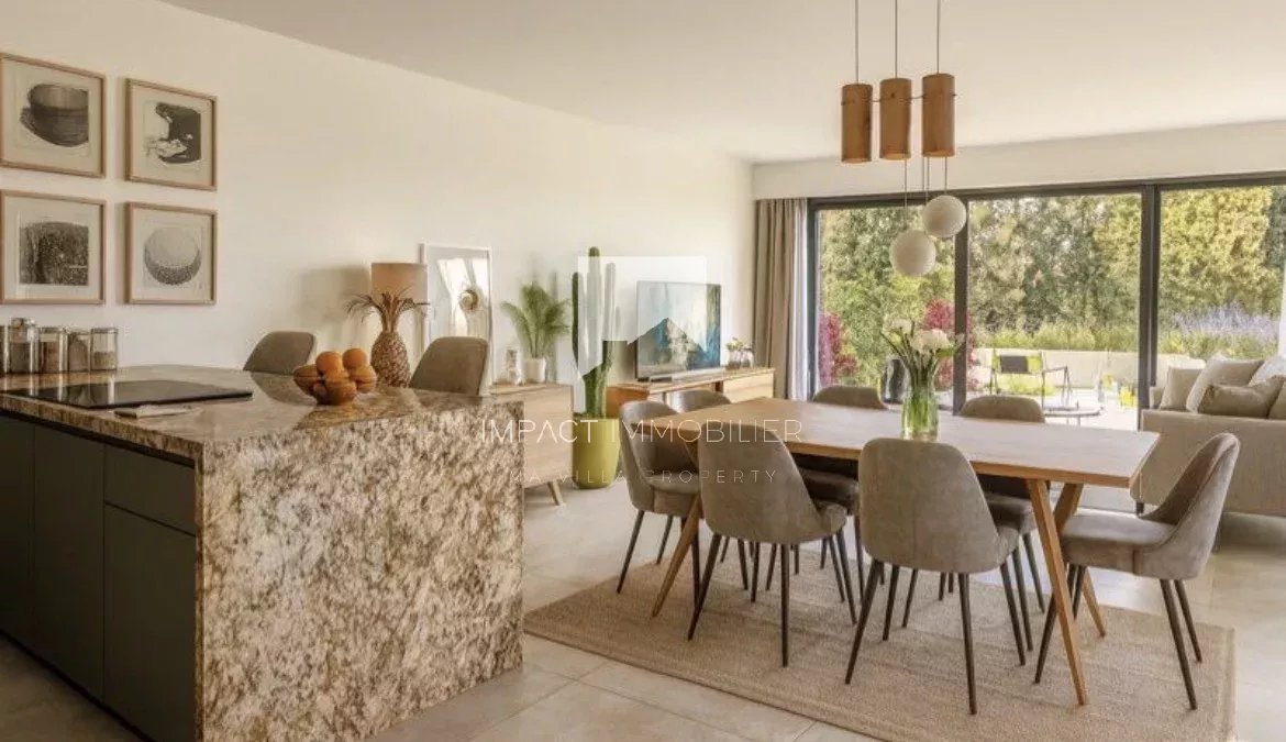 Dès l’entrée, vous découvrirez un vaste espace de vie baigné de lumière, composé d’un séjour raffiné avec cuisine ouverte, entièrement équipée et aménagée, pensée pour conjuguer esthétisme et fonctionnalité.