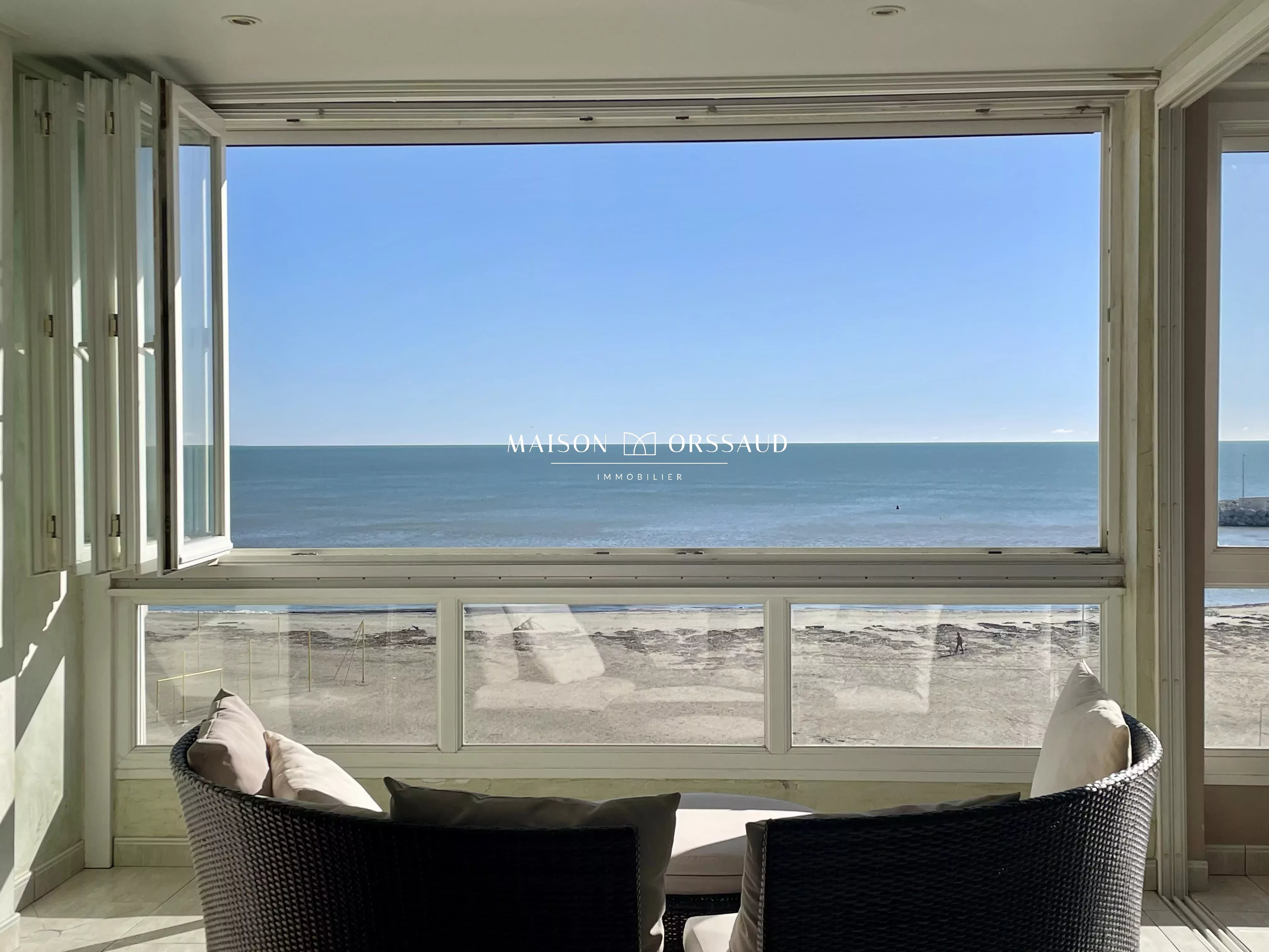 En exclusivité - Au sommet. face à l’infini Penthouse d’exception en 1ère ligne avec vue exceptionnelle sur la mer Méditerranée - Palavas-les-Flots Au 5ème et dernier étage d’une résidence cossue à Palavas-les-Flots, ce penthouse traversant de plus de 180 m², accessible par ascenseur privatif, offre une expérience rare : vivre au-dessus de la Méditerranée. Un spectacle permanent. Séjour / cuisine de près de 100 m², baigné de lumière, entièrement ouvert sur la mer grâce à une façade vitrée pleine hauteur. La vue embrasse l’horizon jusqu’à la pointe de l'Espiguette, le port de plaisance et ses voiliers… Un panorama vivant, à couper le souffle. Cuisine modulable (ouverte ou fermée), prolongée par des ouvrants pleine largeur qui permet de ne plus distinguer de frontière entre l'intérieur et l'extérieur. 3 chambres avec 3 horizons différents : Une suite avec avec la mer à perte de vue ainsi que le port de plaisance. Deux chambres tournées vers les bassins et leurs flamands roses, avec en toile de fond le Pic Saint-Loup, l'Hortus et l'arrière pays cévenol. Chaque pièce offre une perspective unique tel un tableau. Prestations haut de gamme : - Triple exposition (Sud dominante) - Pompe à chaleur, climatisation gainable - DPE exceptionnel : A / A - Volets électriques centralisés - Pièce dédiée pouvant accueillir un spa - 2 garages box + cellier 15 m² À deux pas de la plage, du port, des restaurants et des commerces tout au long de l’année. Un bien rare. Une adresse iconique. Visite confidentielle sur demande.