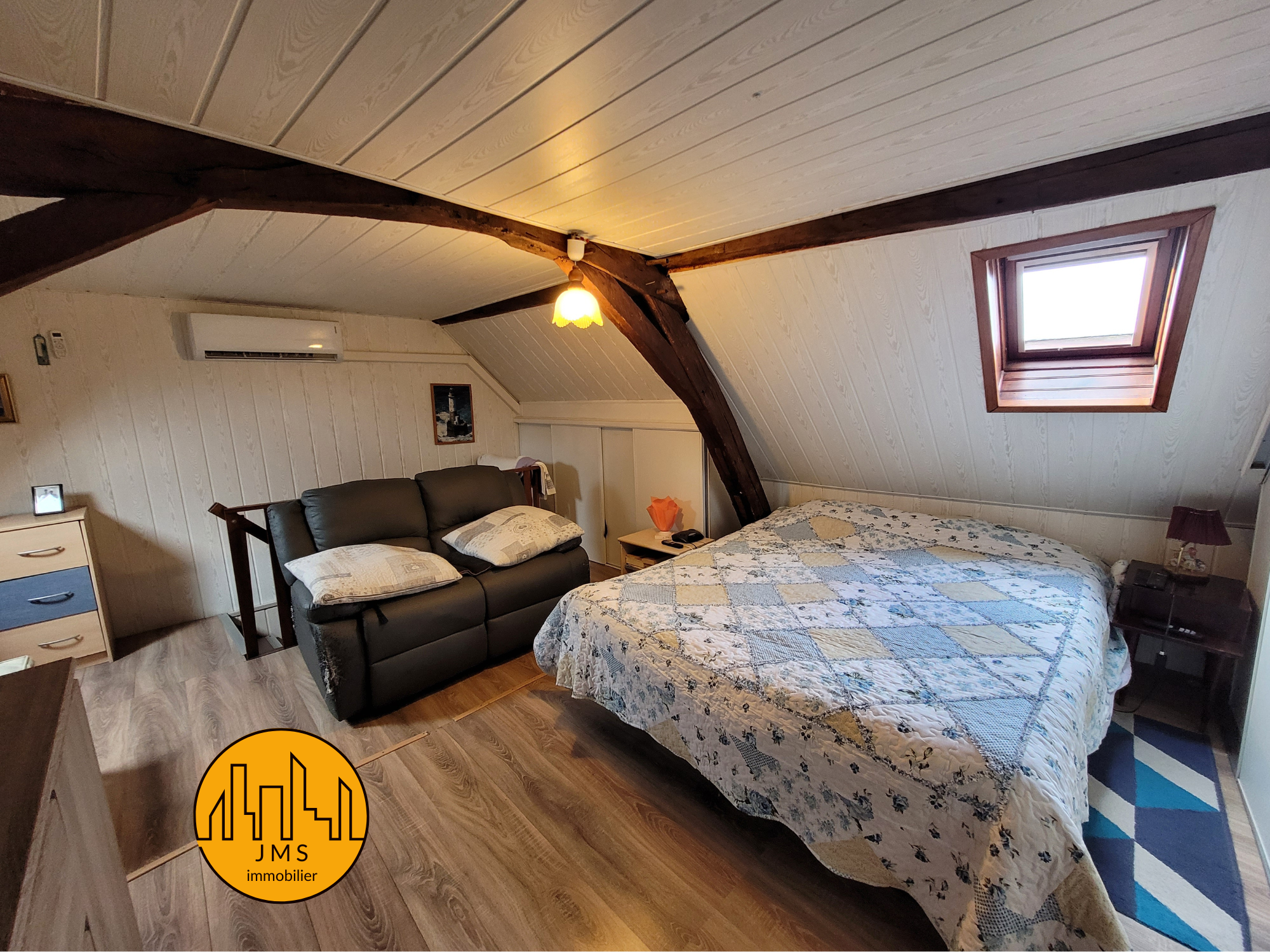 Au rez de chaussée : séjour, cuisine, chambre, salle d'eau avec WC, toilette indépendant, petite véranda et à l' étage, une vaste chambre et de nombreux rangements.
